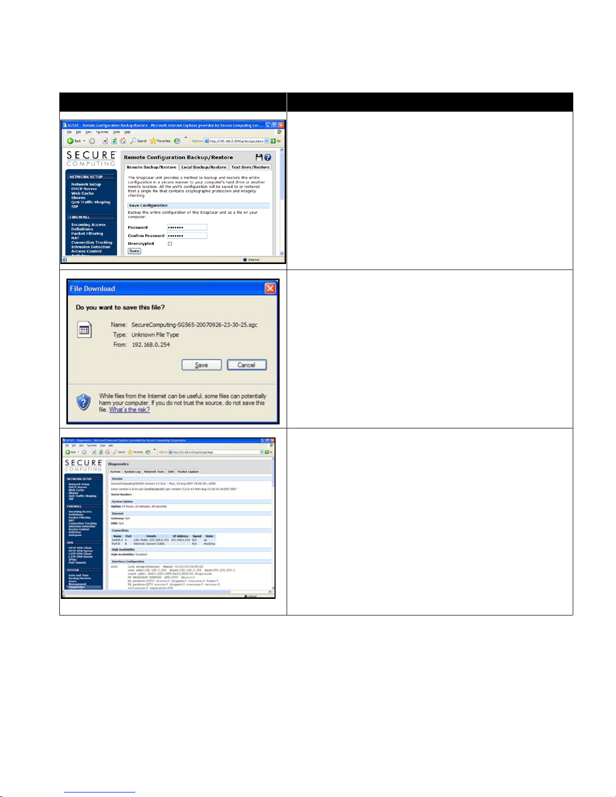 links to the Save/Restore page and the Secure Computing