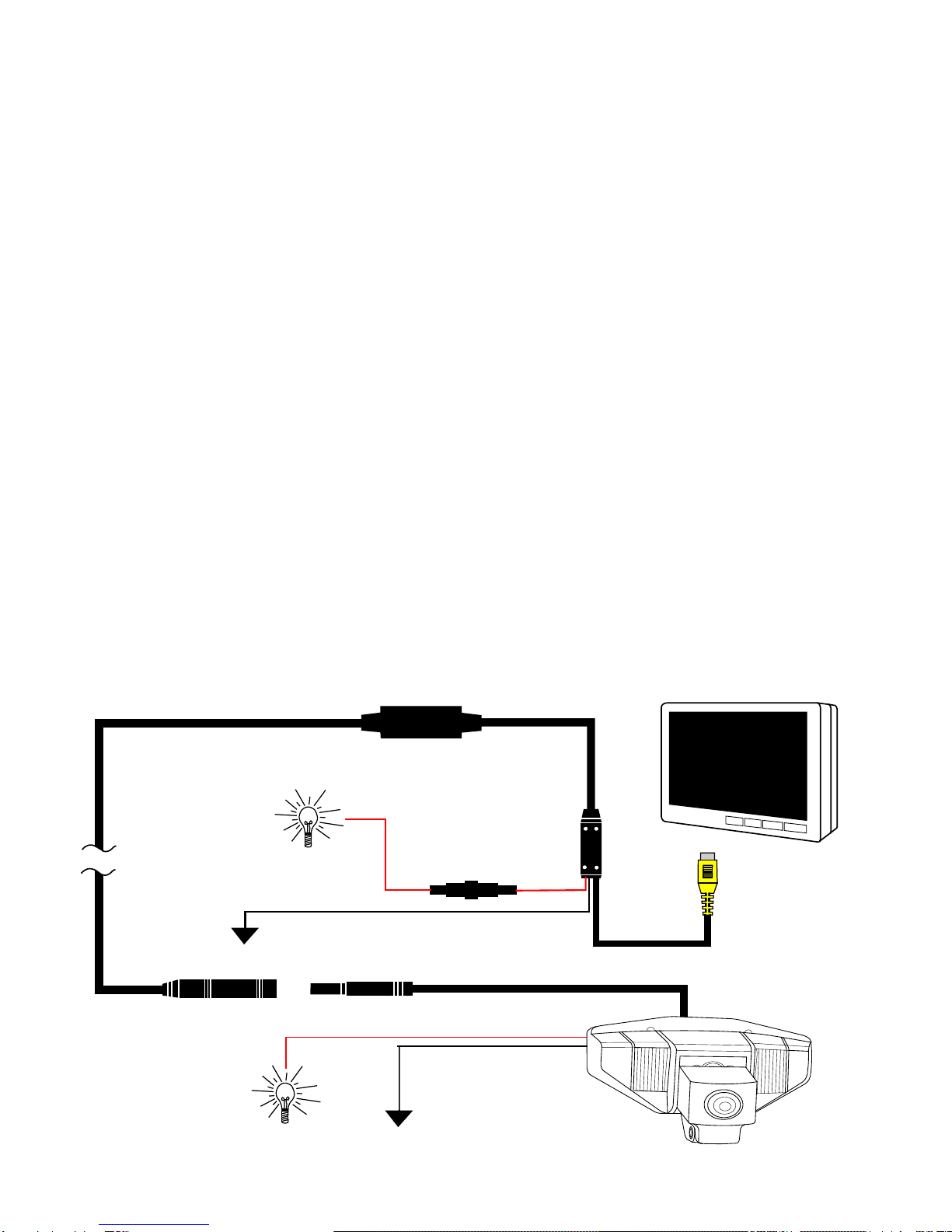 5. Run the Yellow RCA video cable to the monitor’s video input or reverse camera input.