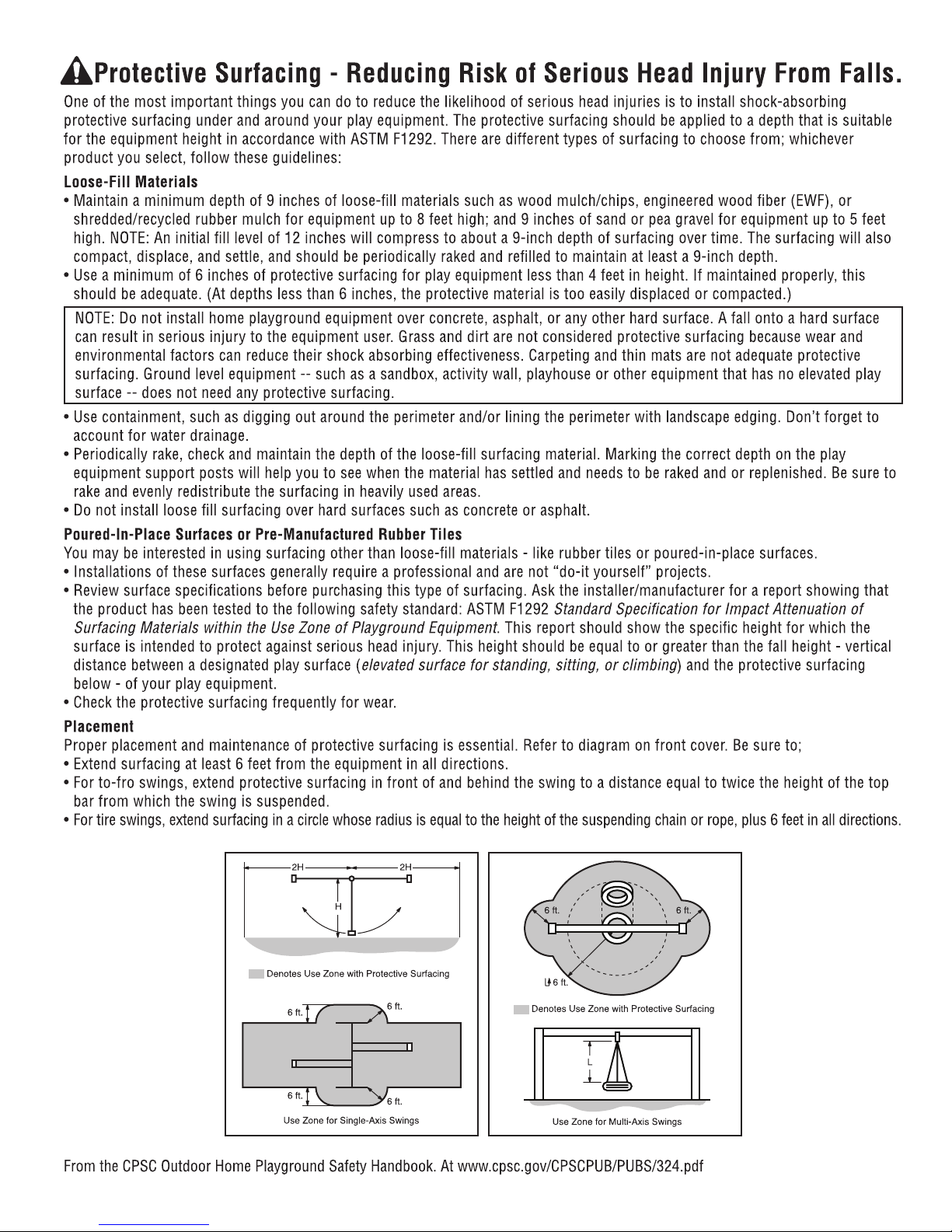 CONTINUOUS ADULT SUPERVISION REQUIRED. Most serious injuries and deaths on playground equipment have occurred