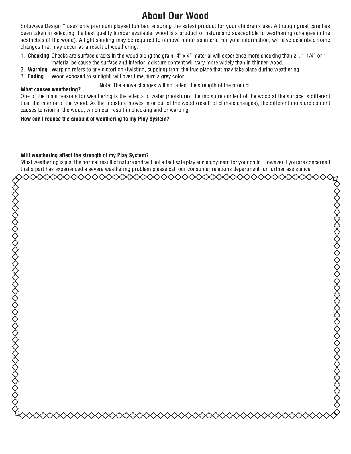 About Our Wood – Limited Warranty . . . . . . . . . . . . . . pg. 5