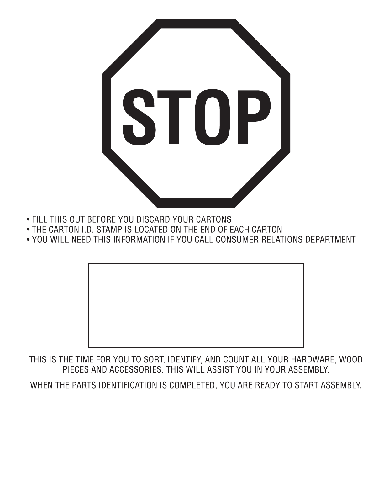 CARTON I.D. STAMP: __ __ __ __ __ 14459 ___ (Box 1)