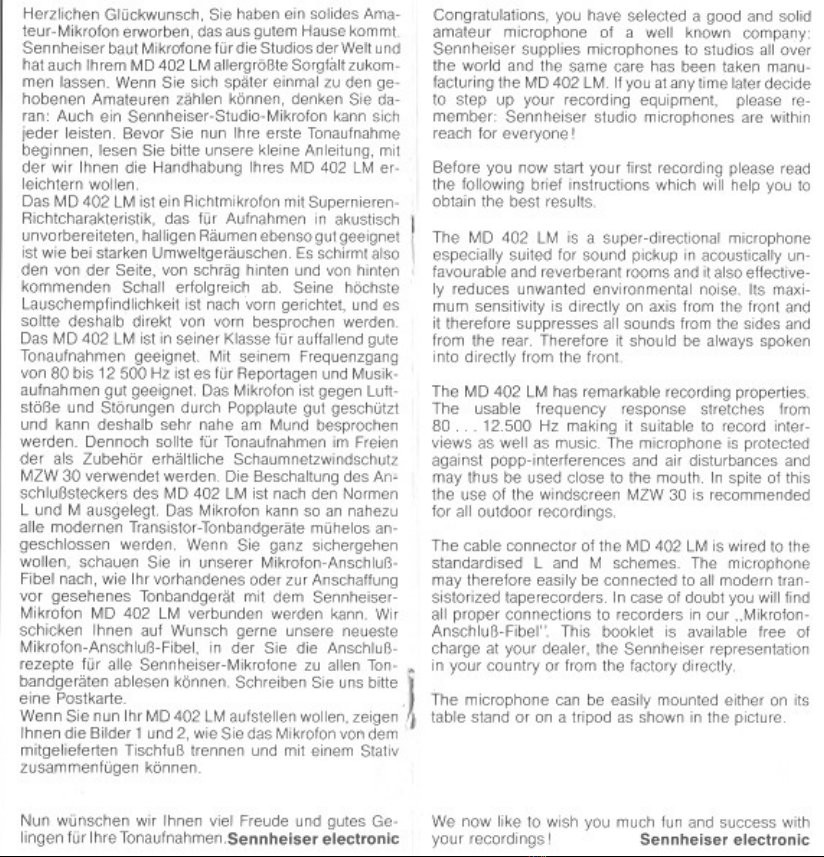 Sennheiser MD 402 LM Manuale utente
