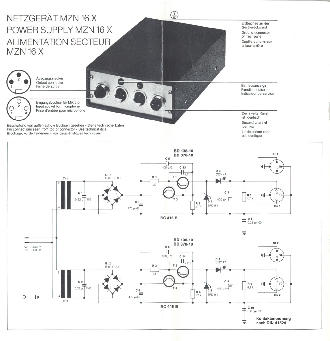 The power supply MZN 16 X serves to feed two condenser micro-