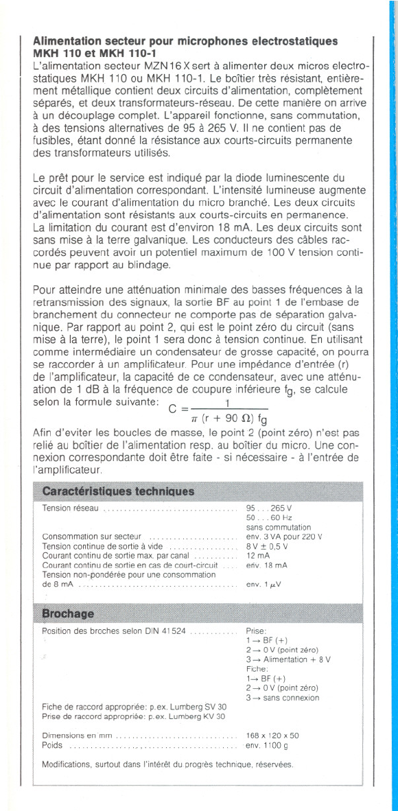 Power supply for condenser mlcrophones MKH 110 8nd