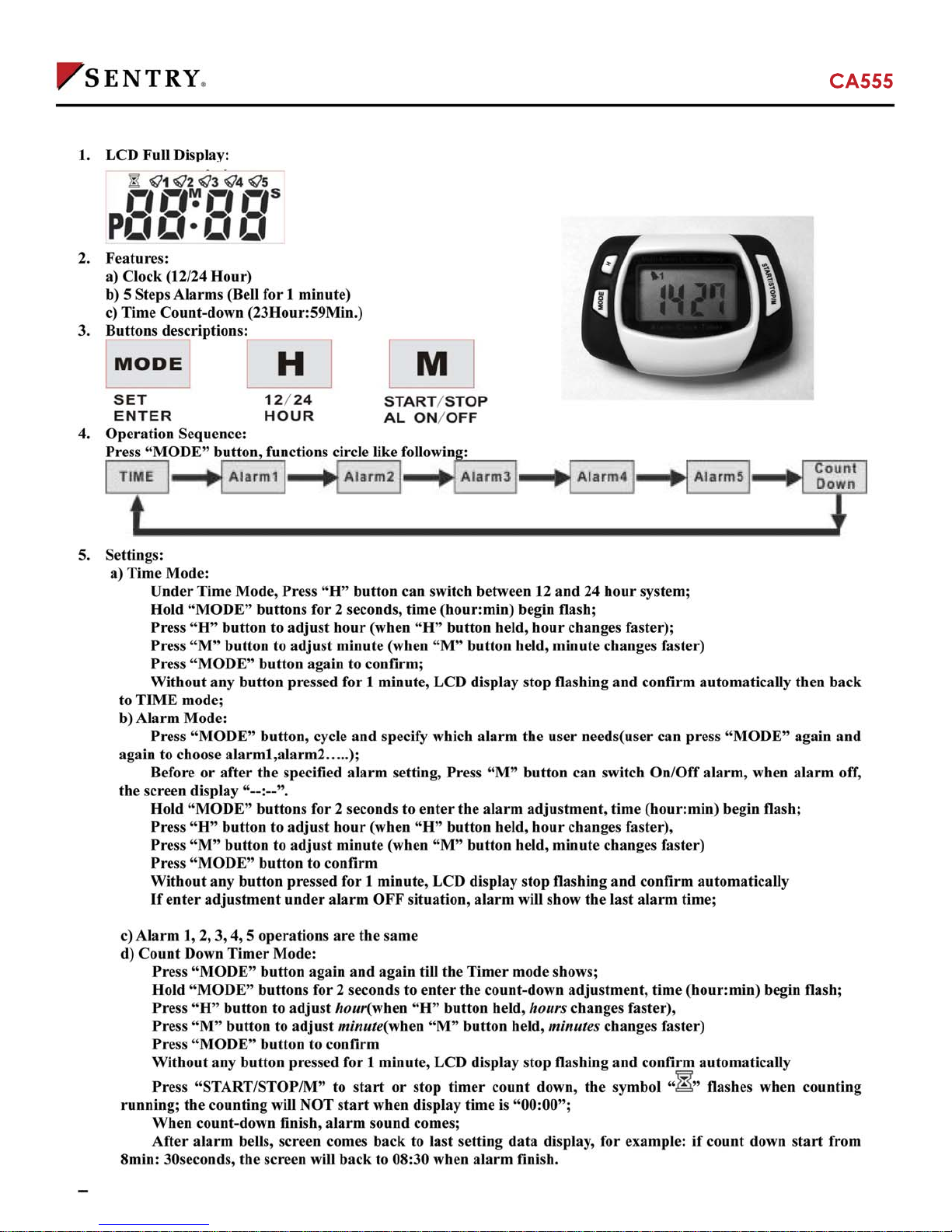 Altri manuali Sentry Orologio