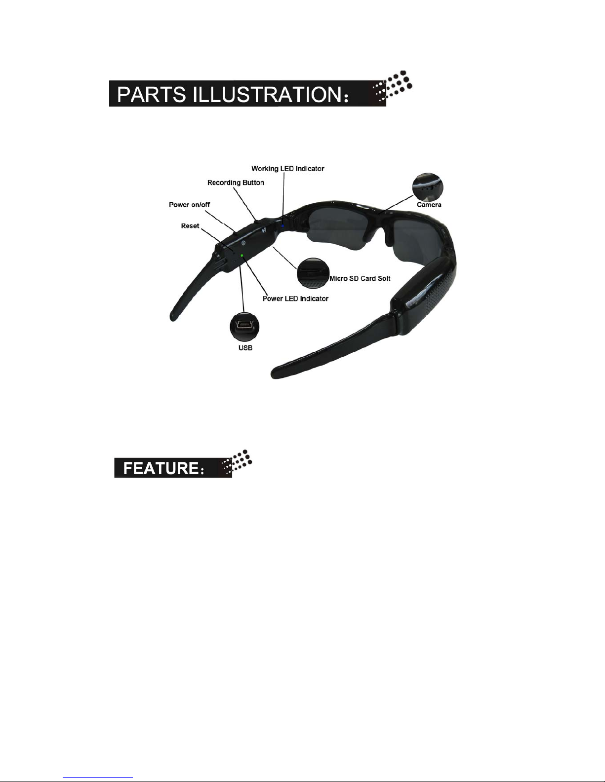 Caution: DO NOT record towards the sun or it will damage the camera.