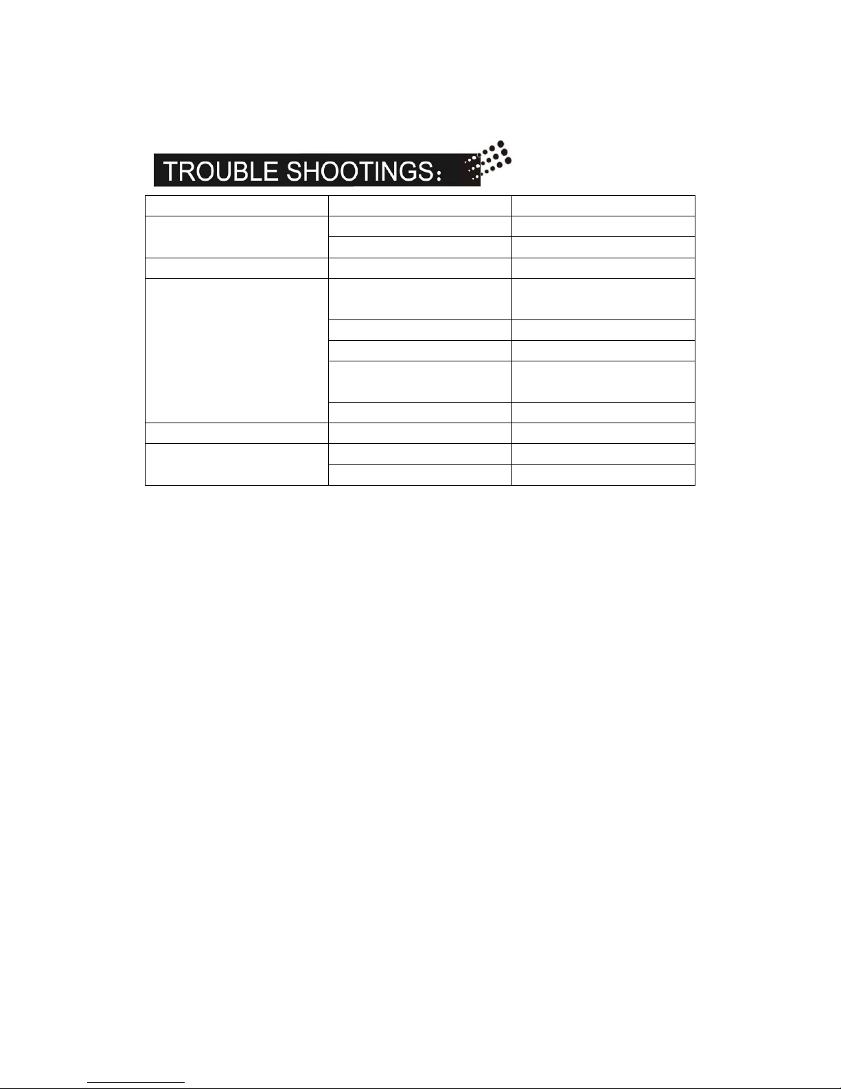 Symptom Possible reason Solution