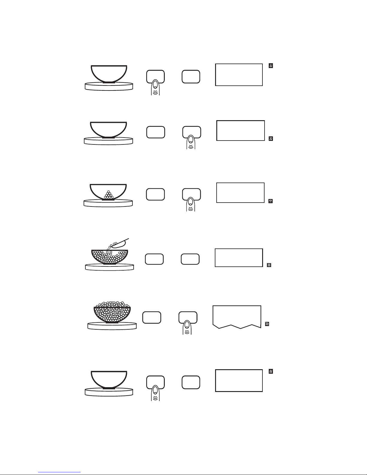 1. Place an empty container on the scale. Press the zero key.