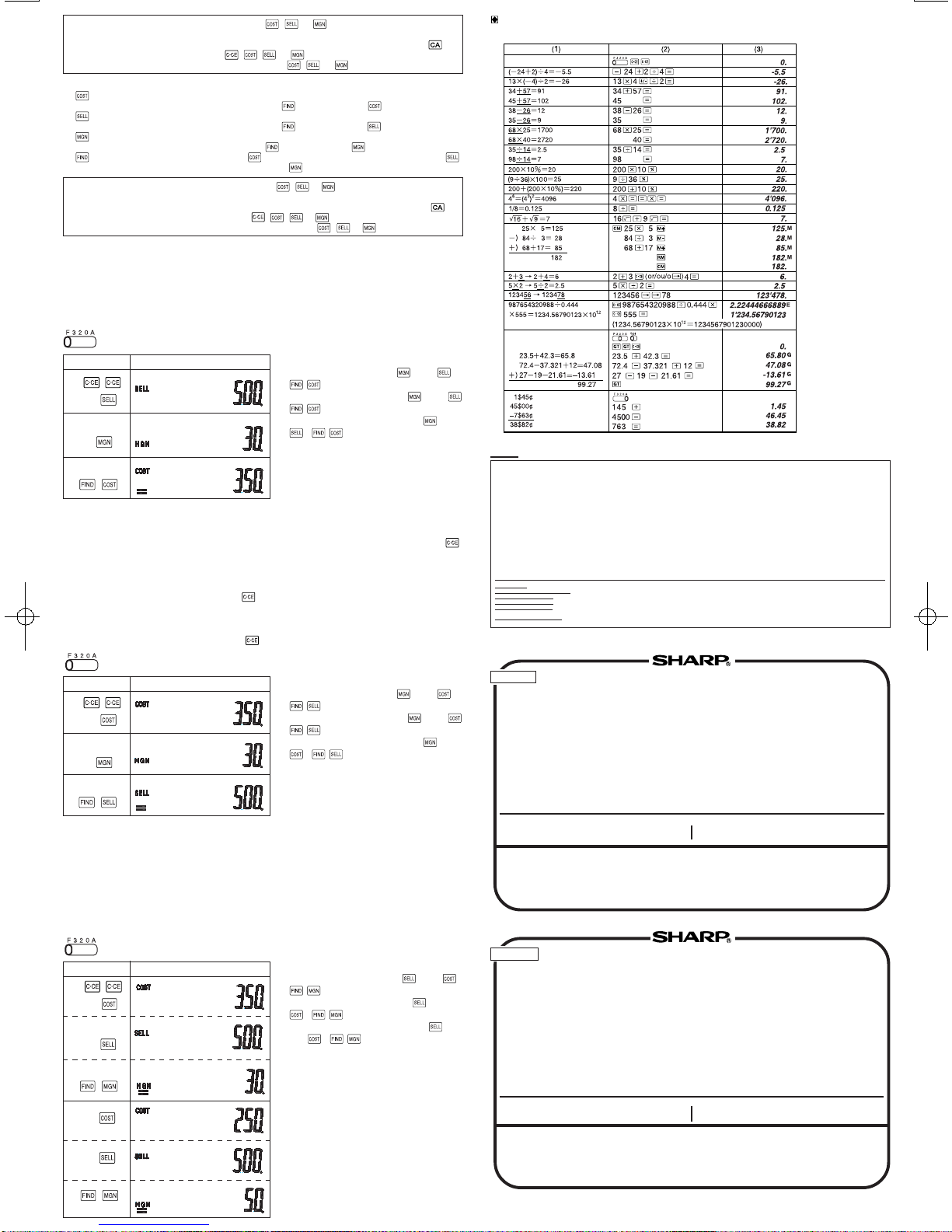 •Utilice las cuatro teclas siguientes para realizar el cálculo de precio de costo/precio de venta/margen: