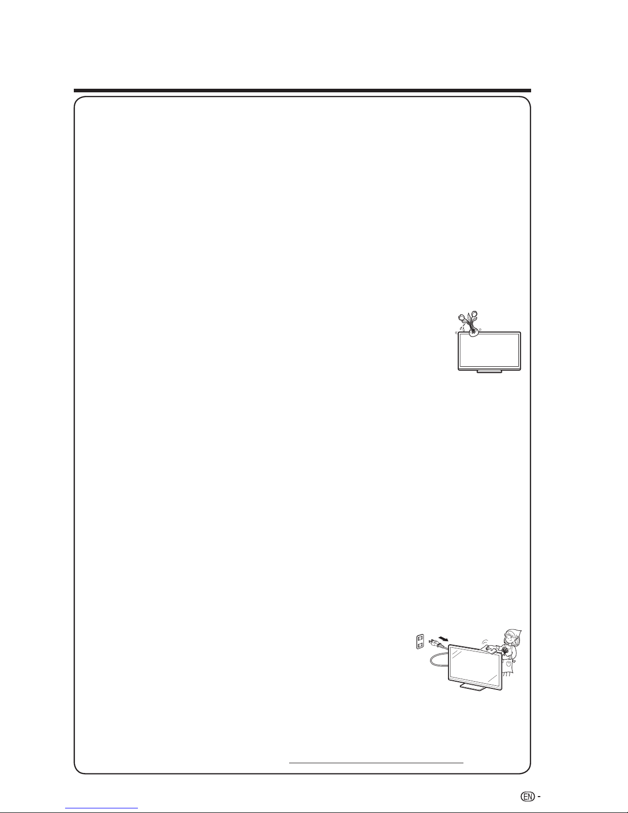 • To prevent fire, never place any type of candle or flames on the top or near the TV set.