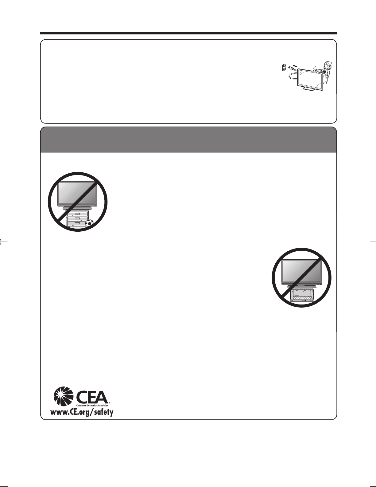 • To prevent fire, never place any type of candle or flames on the top or near the TV set.