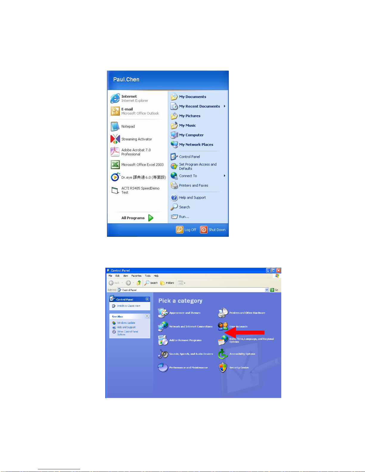 The procedures below is the setup procedure of a PC using Windows XP as