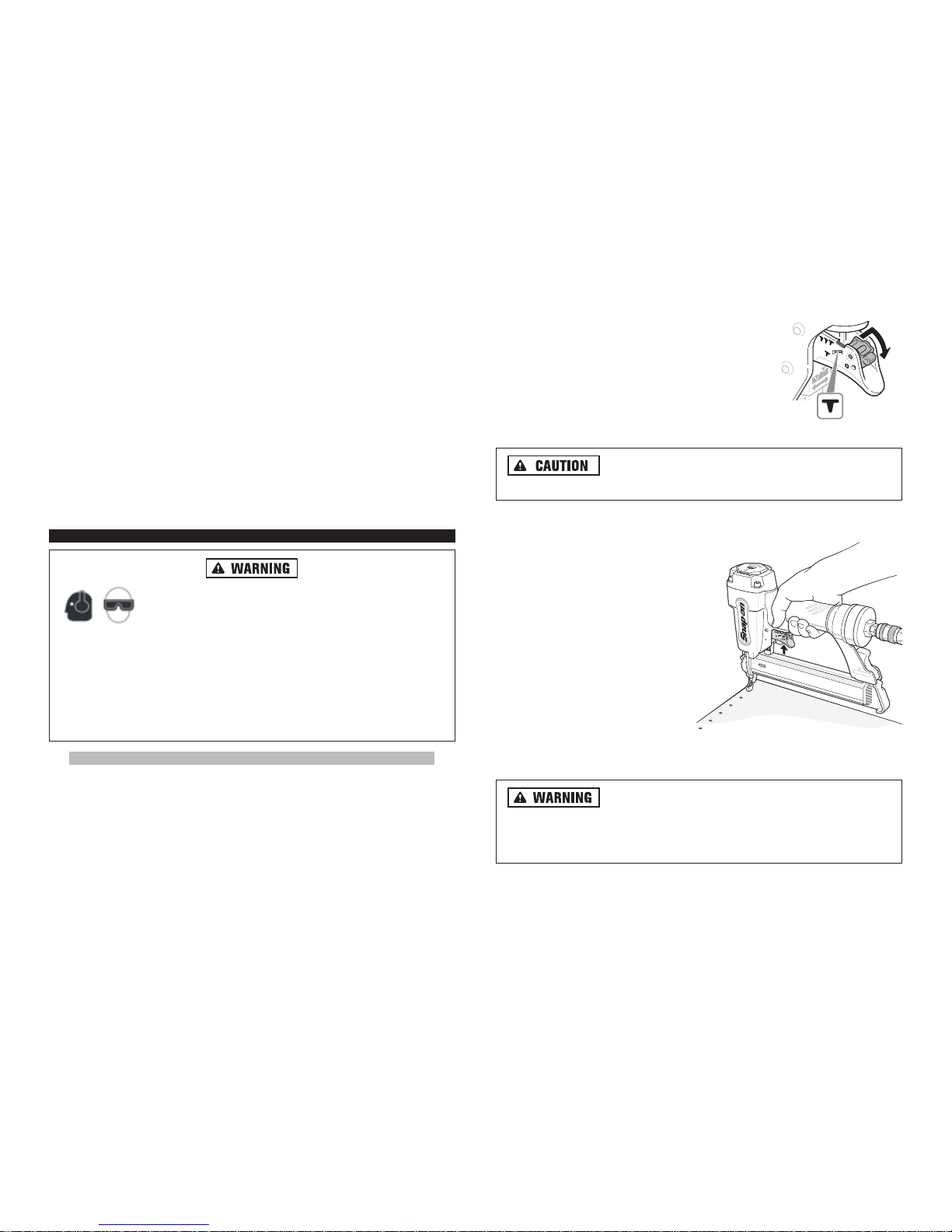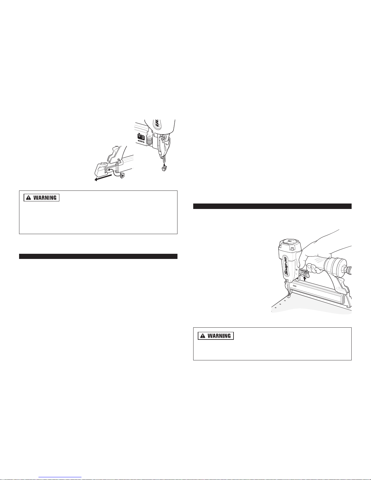 er unless it is pressed firmly against the work piece. Do not point the brad nail-