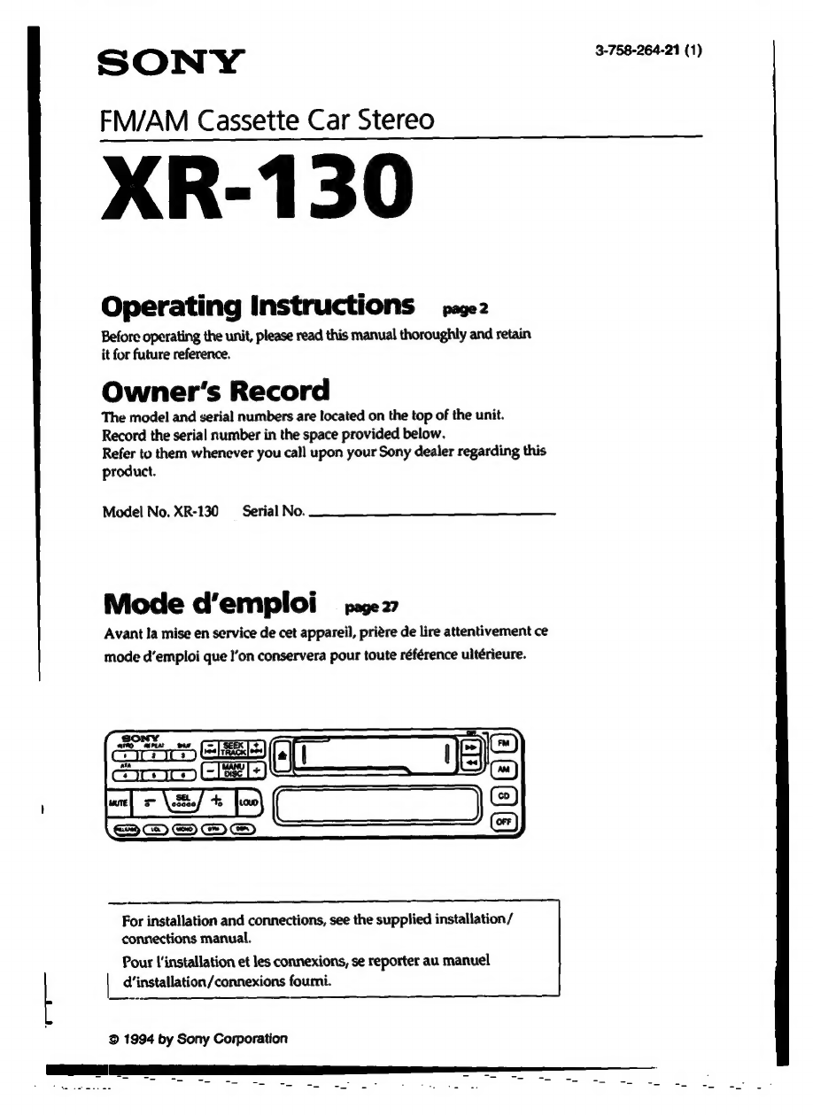 Sony XR-130 Manuale utente