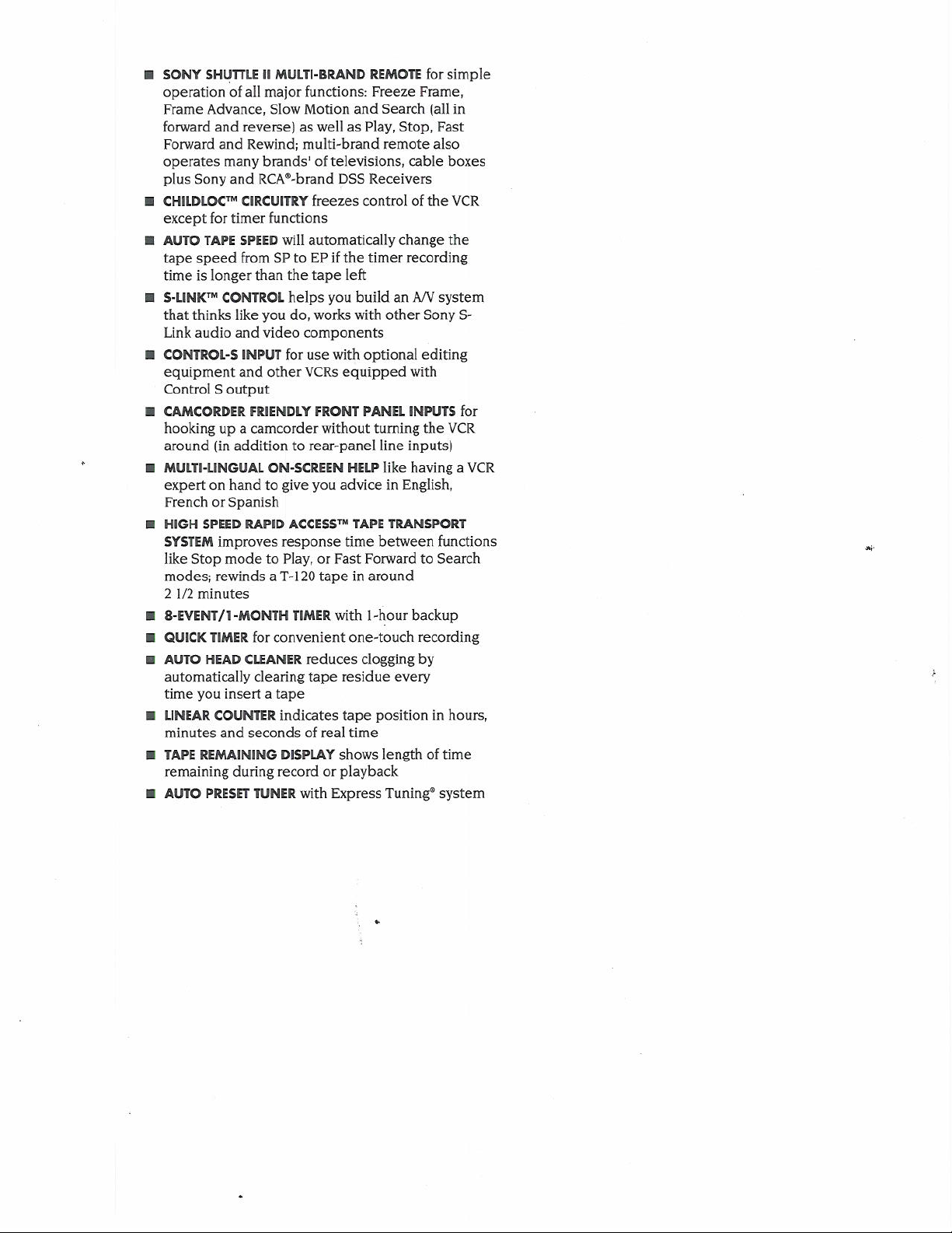 Altri manuali Sony Sistema VCR