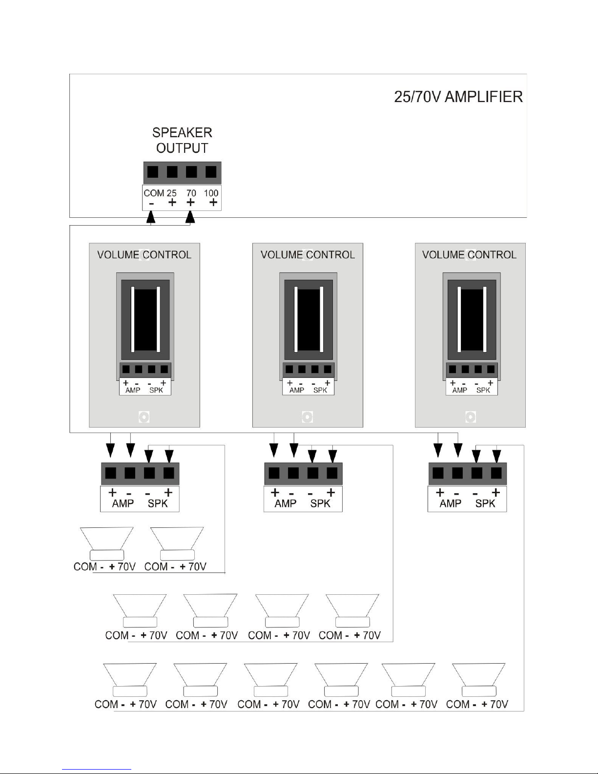 25V -------------------AMP + SPK + ---- + 25/70V