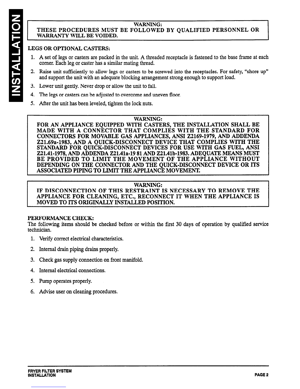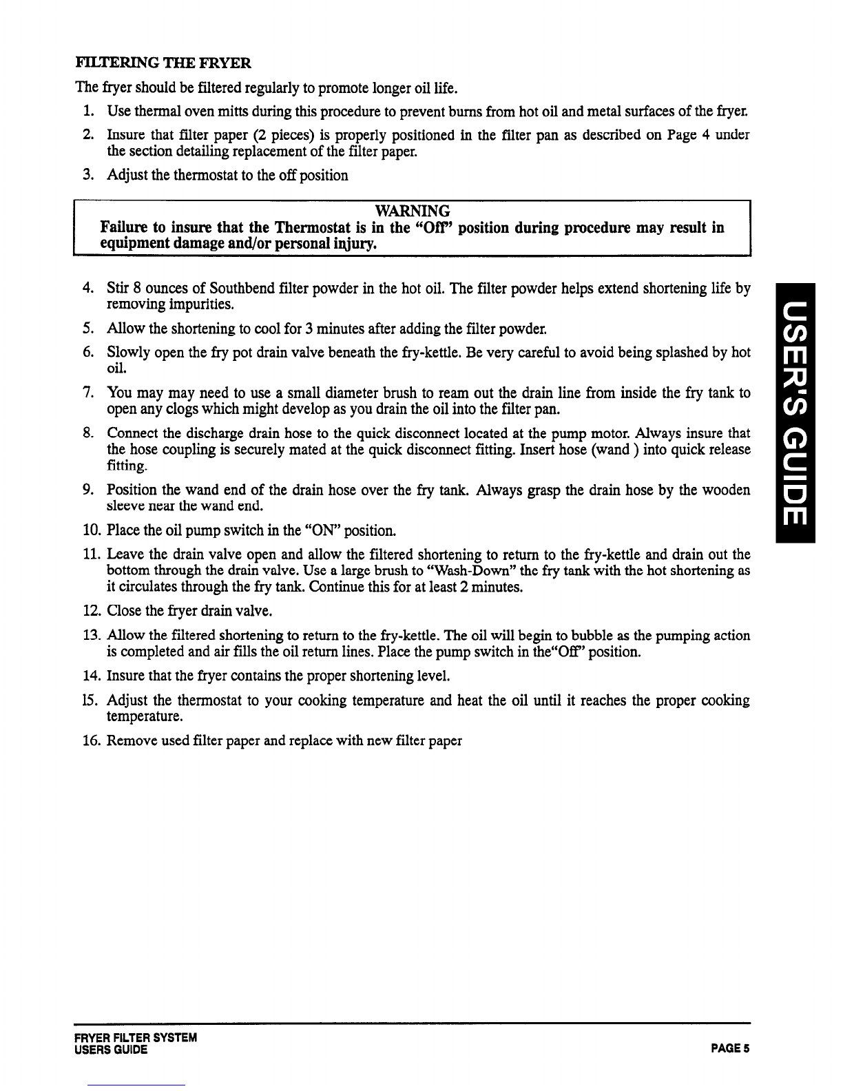 the fryer’s filter pan. Failure to insure that the fryer’s cook/filter switch is in the “Filter” position