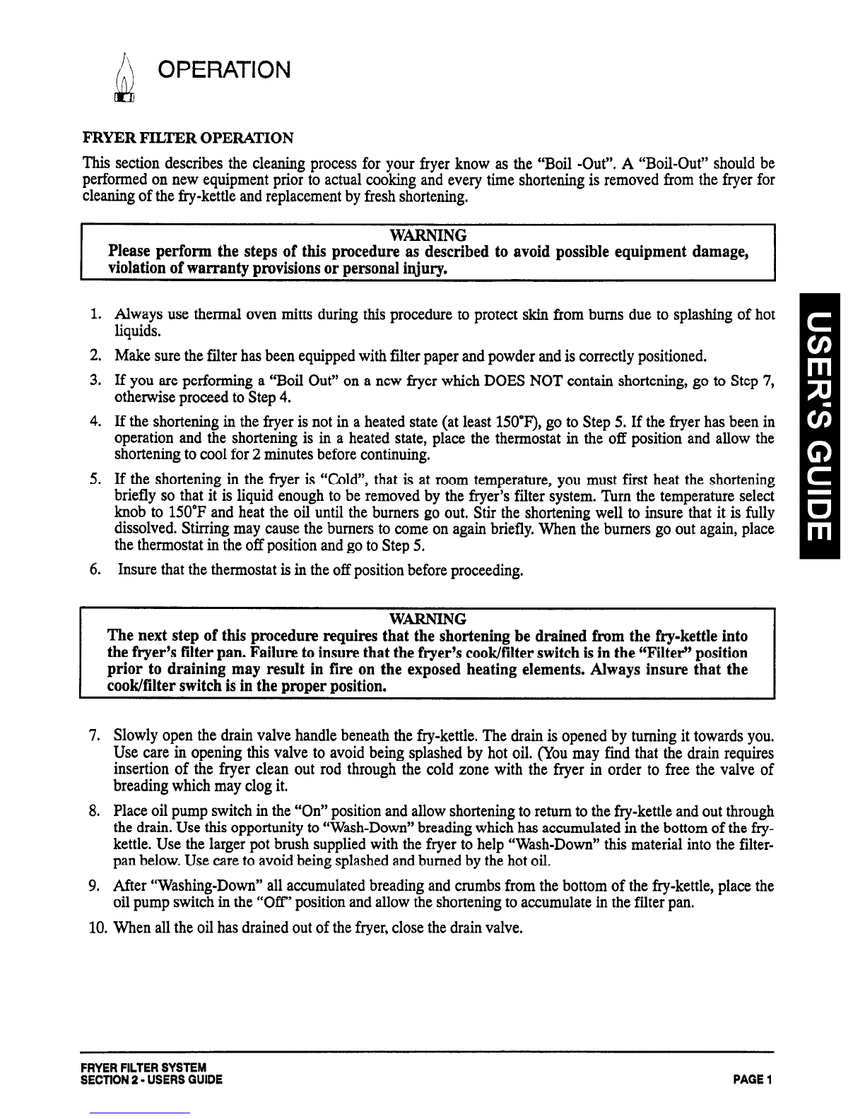 This section describesthe cleaning processfor your fryer know as the “Boil -Out”. A “Boil-Out” should be