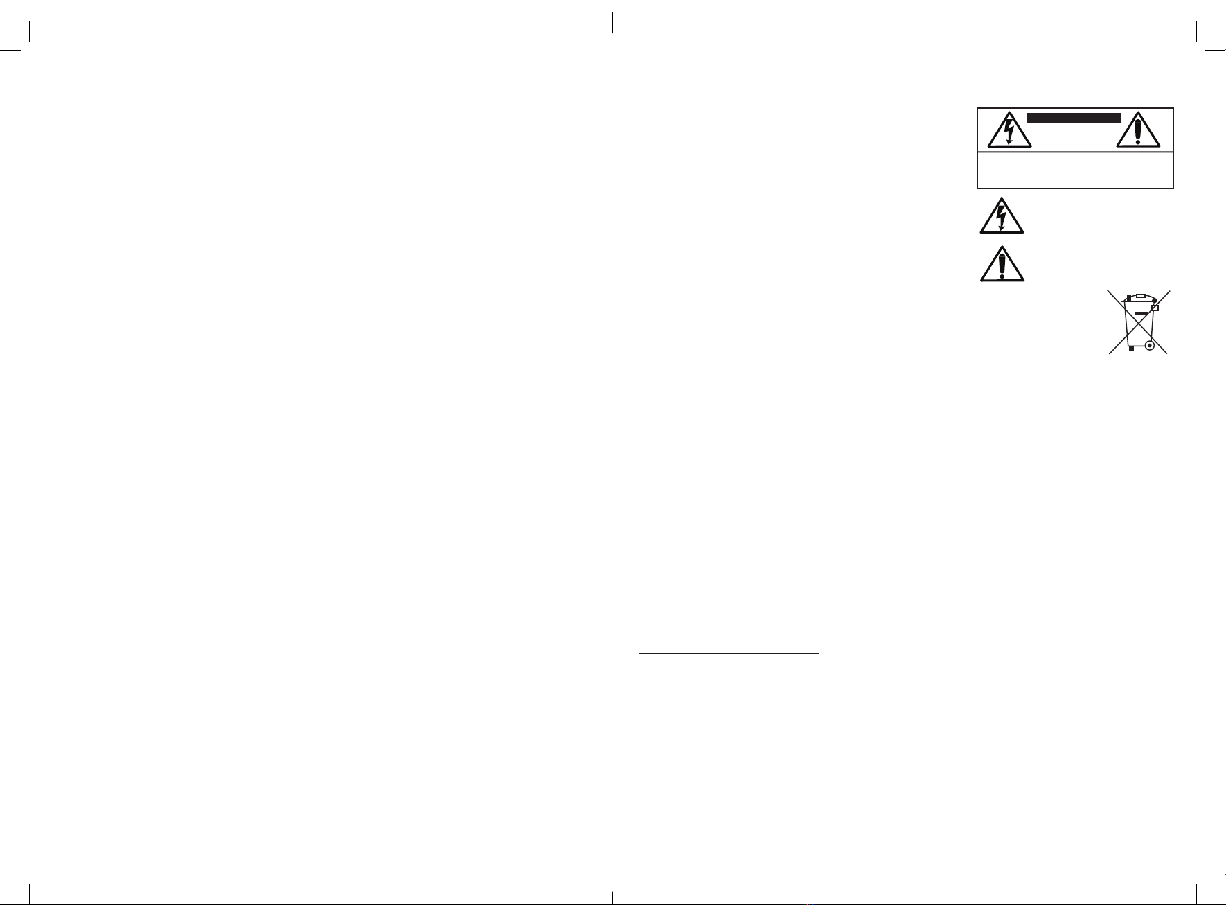 CAUTION: TO REDUCE THE RISK OF ELECTRIC SHOCK,
