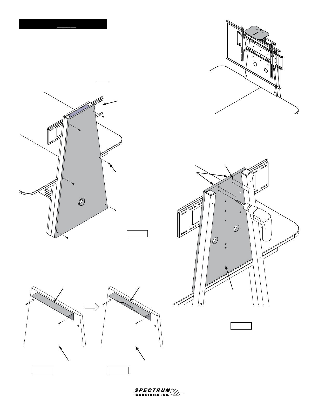 4. Locate the four 3/8” holes on top of the display stand front panel.