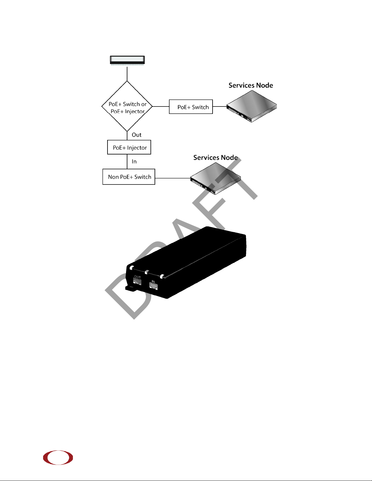 The illustration below shows a generic single-port PoE+ injector. Use this injector only when a PoE+