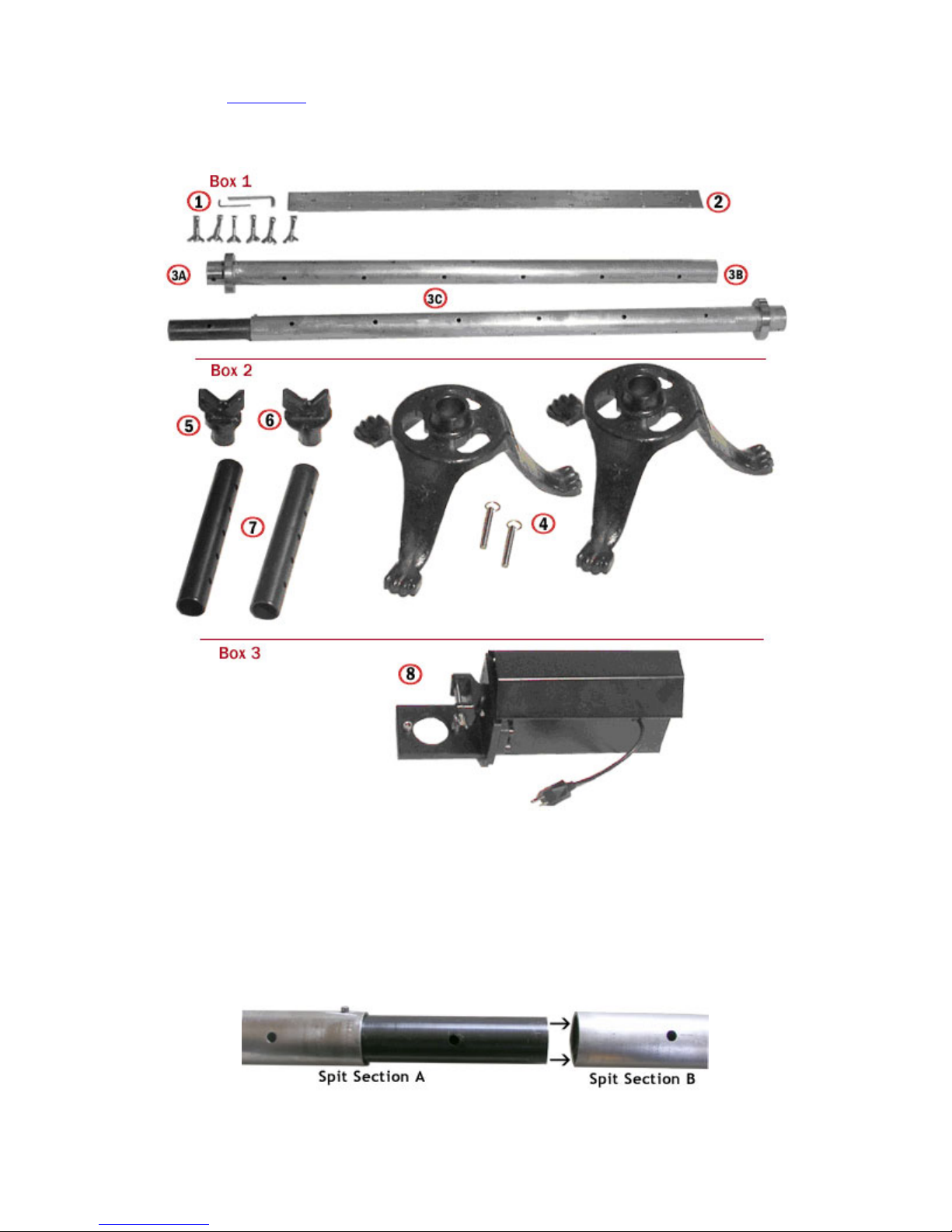 proper adjustment, the loaded spit has been attached as instructed above, the drip pan is in place, the