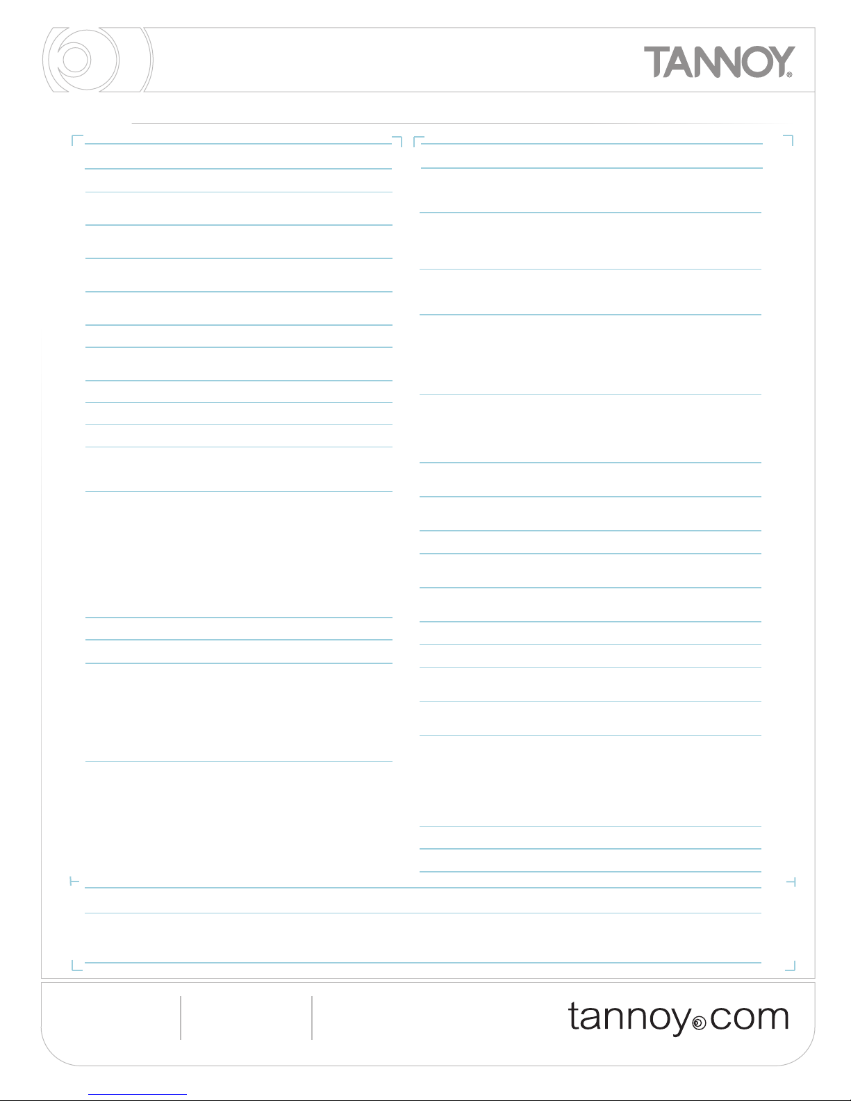 Tannoy adopts a policy of continuous improvement and product specification is subject to change POWERV8 data file // issue: 1.06 // 15.01.08