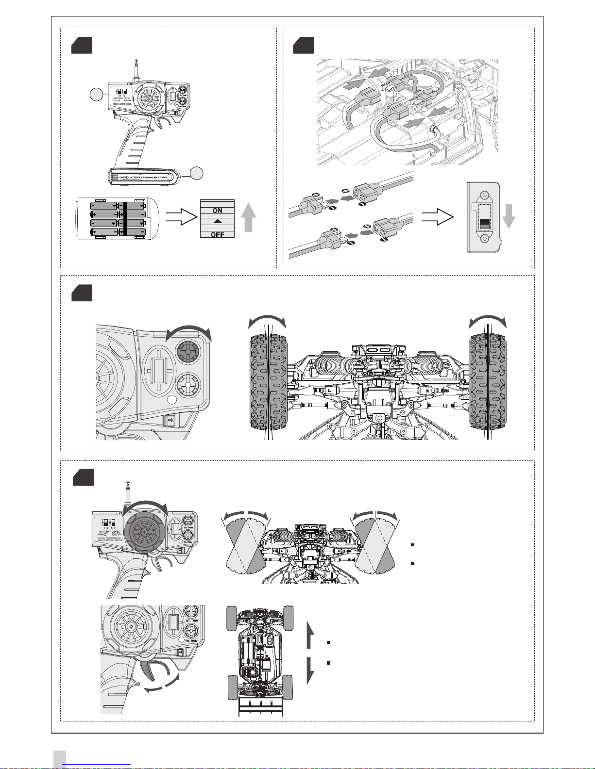 2. Lift the car with the 4 wheels un-touching. Adjust & make sure the throttle forward direction