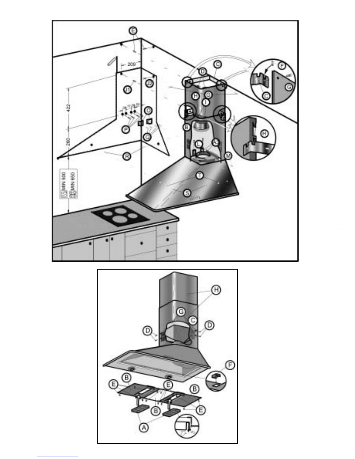 • The lower part of the kitchen hood must be