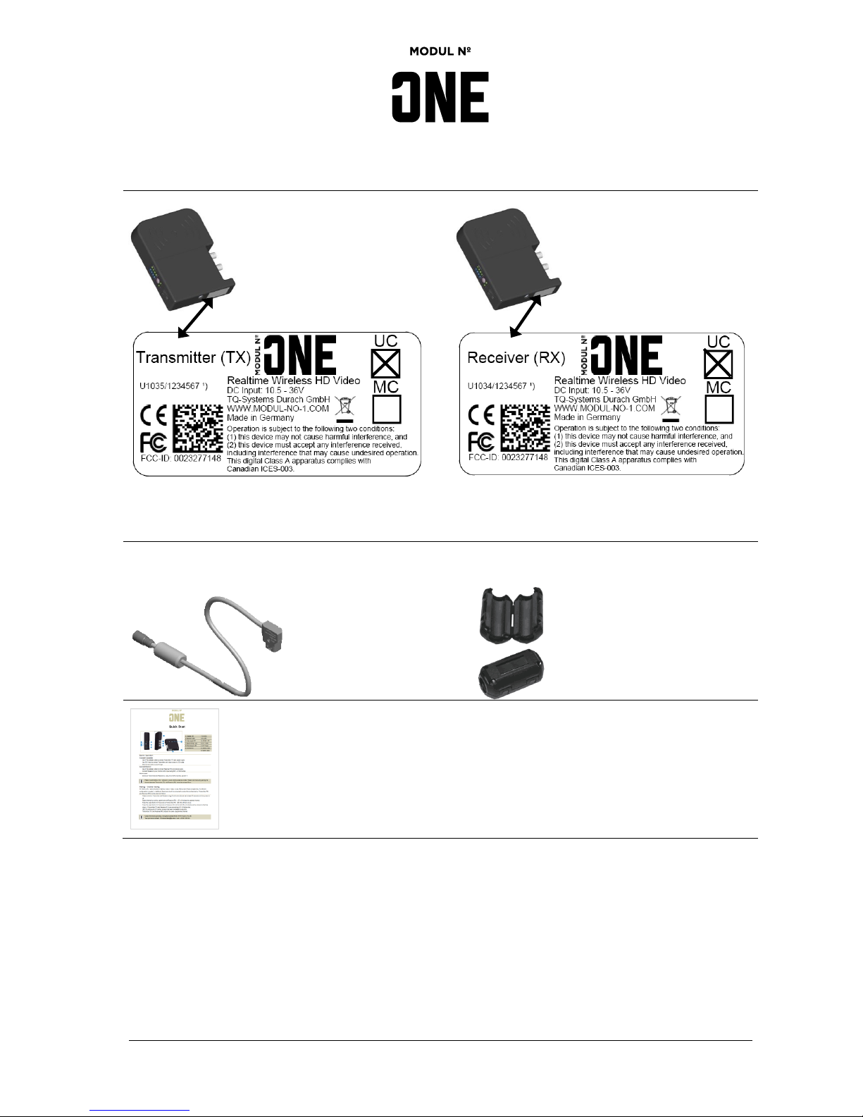 MODUL NO. Transmitter (TX) is equipped with a loop-through 3G-SDI input/output. Transmitted video