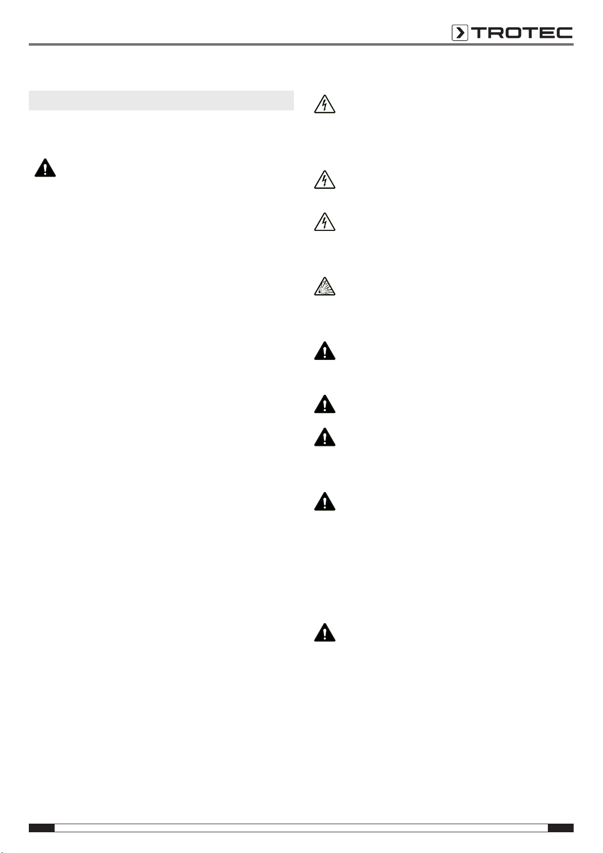 N'utilisez pas l'appareil sur les personnes ou les animaux. Trotec décline toute