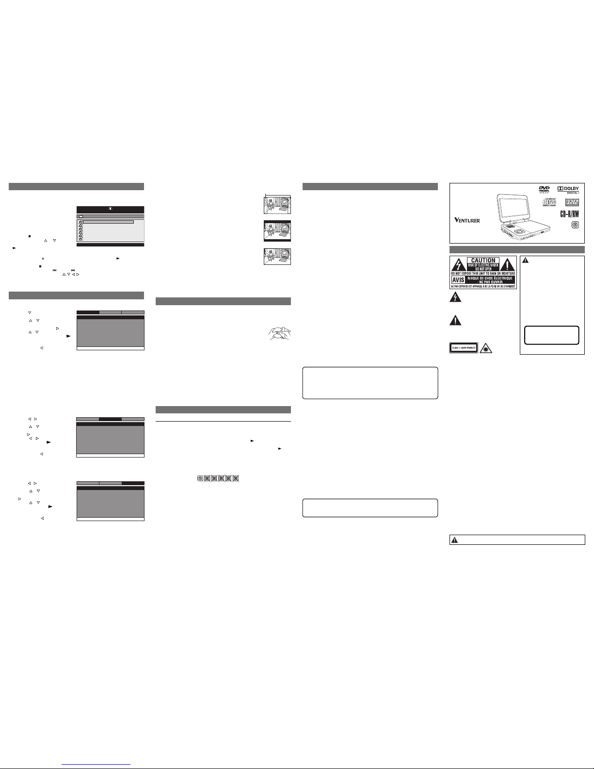 • The displayable picture size is preset on the DVD. Therefore the playback
