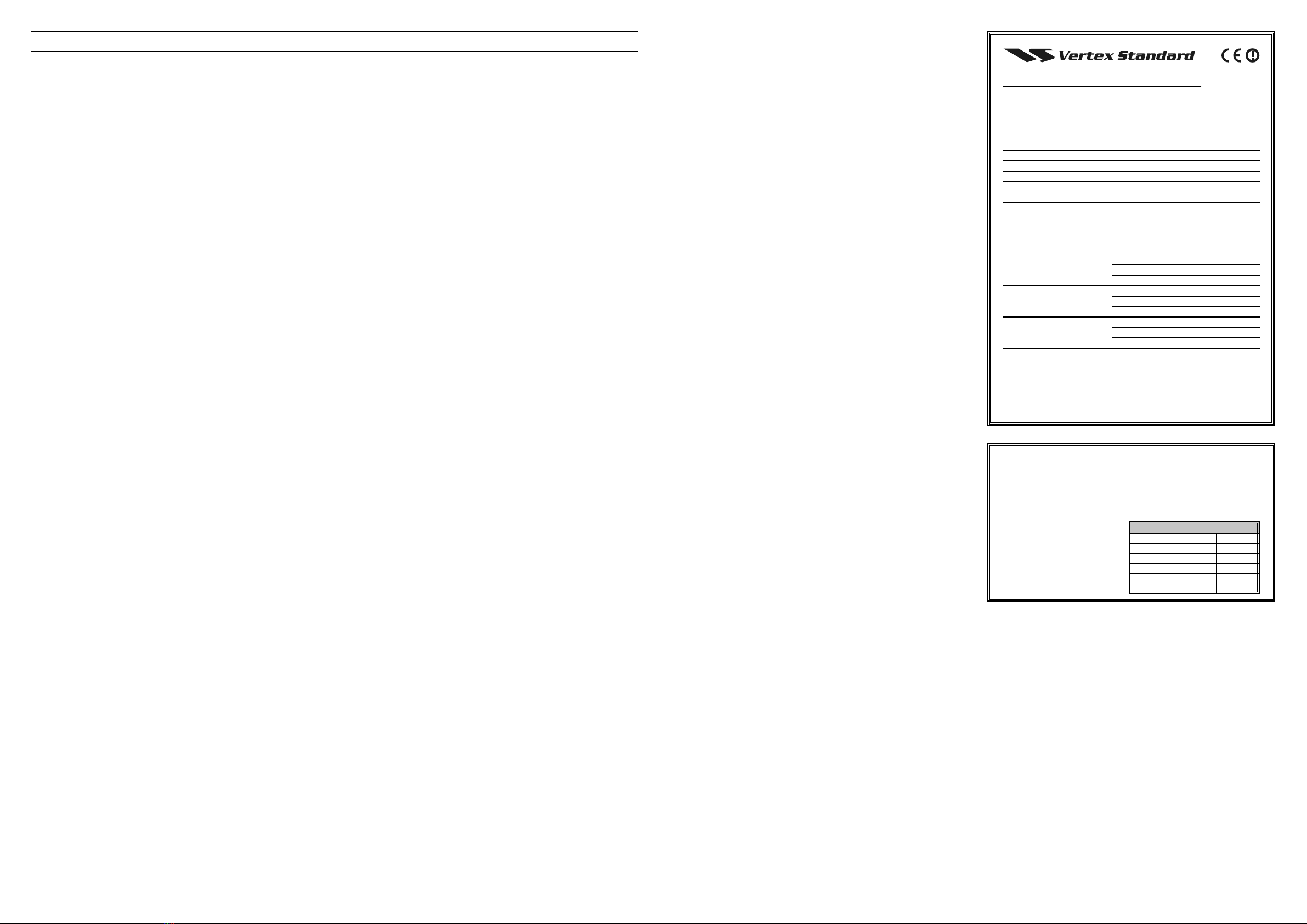 details, contact your VERTEX STANDARD dealer.