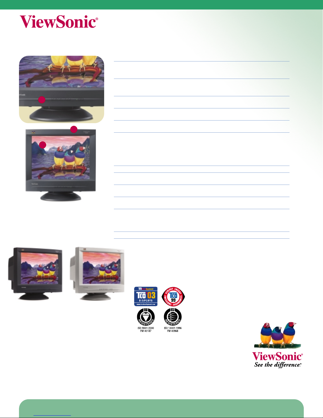 *Leading stand-alone, branded monitor by sales (CRT and LCDs combined; iSuppli/Stanford Resources Monitrak®and Flat Panel Monitrak,®1Q04 Report) **Adapter may be required. Analog adapter available from ViewSonic. Specifications subject to change without notice. Selection, offers and programs may
