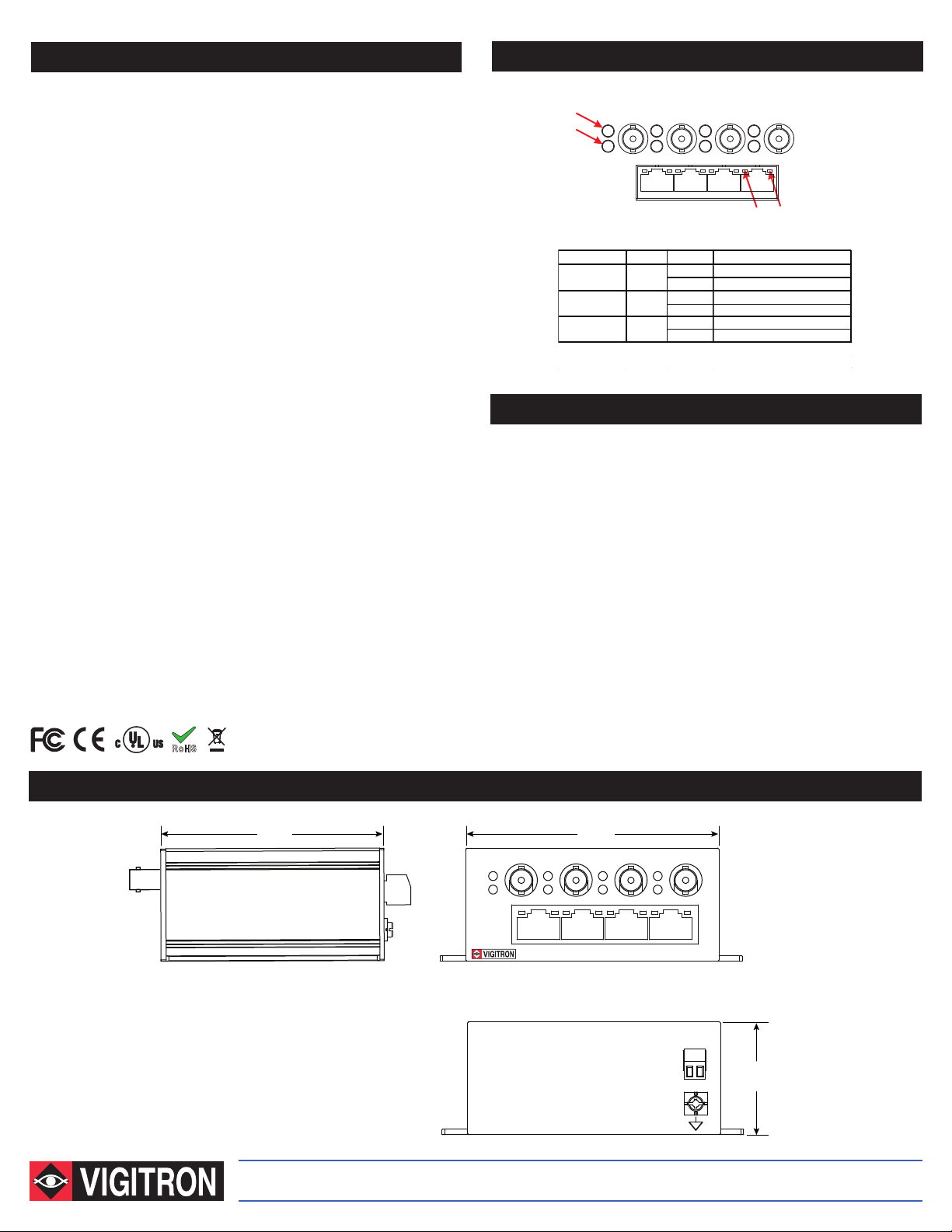 each coaxial cable. They are equipped with LEDs to provide link status and