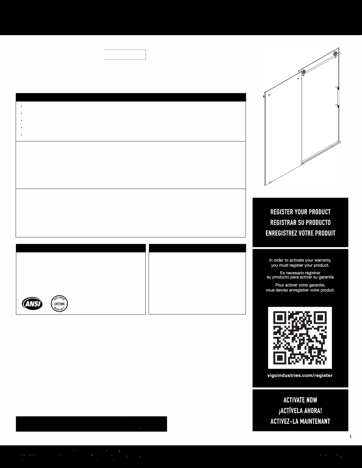 VIGO Poe de douche coulissante sans cadre Cass