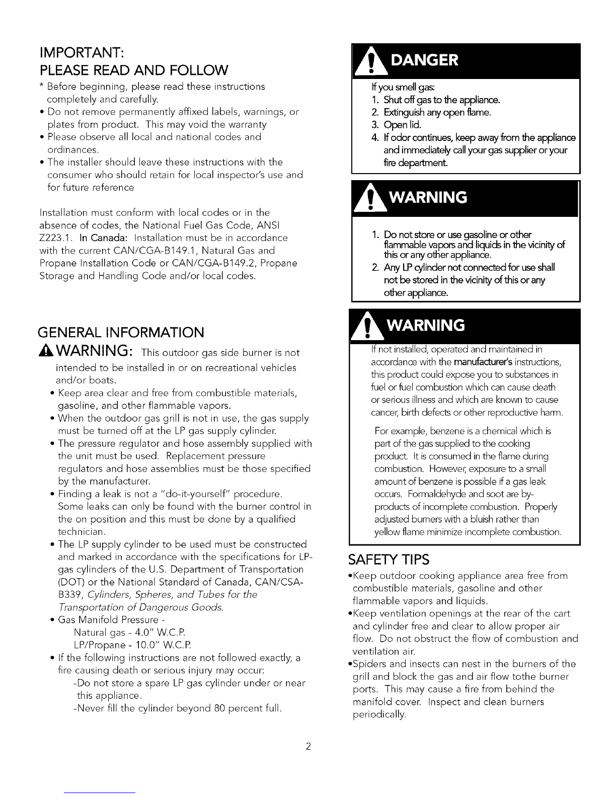 &WARNING: This outdoor gas side burner is not