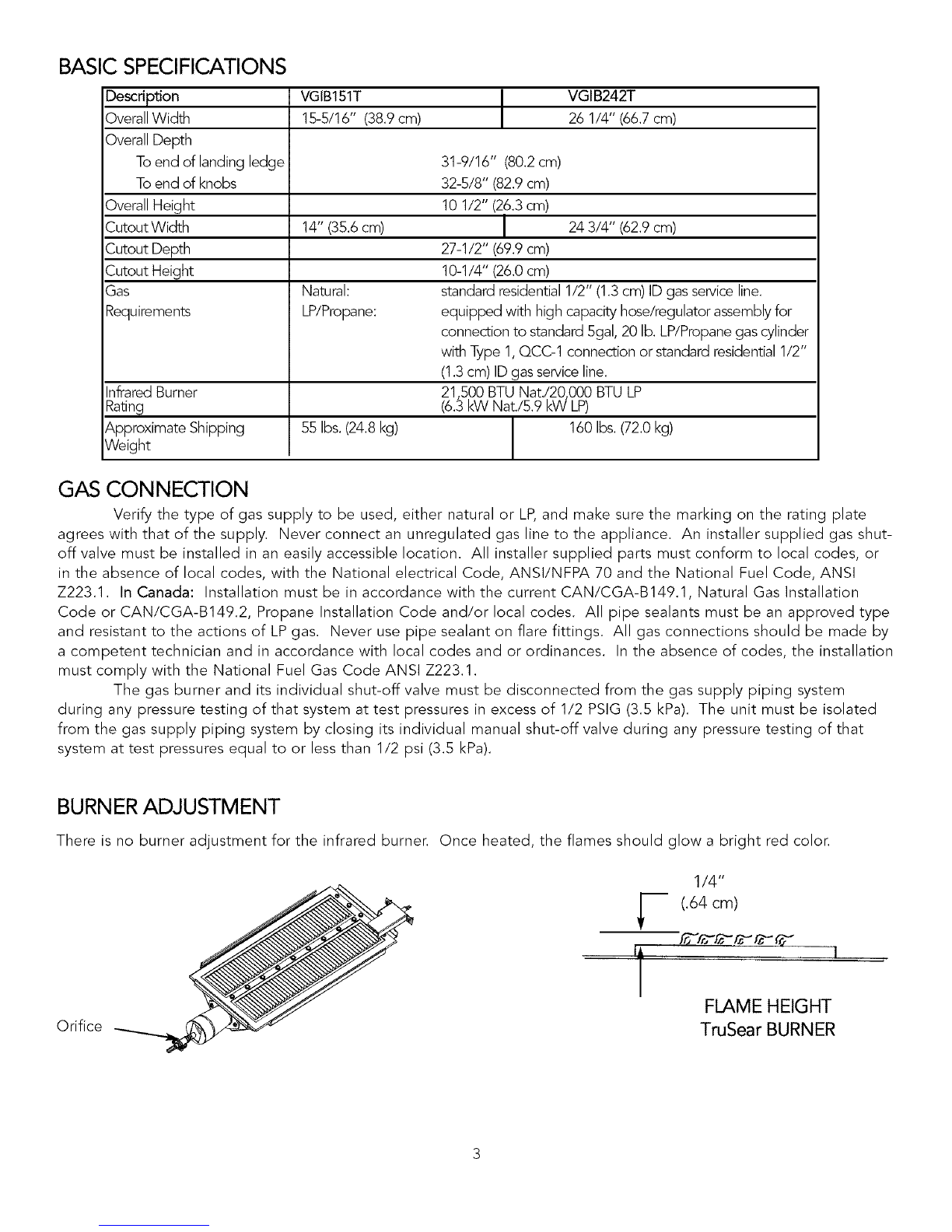 Z223.1. In Canada: Installation must be in accordance