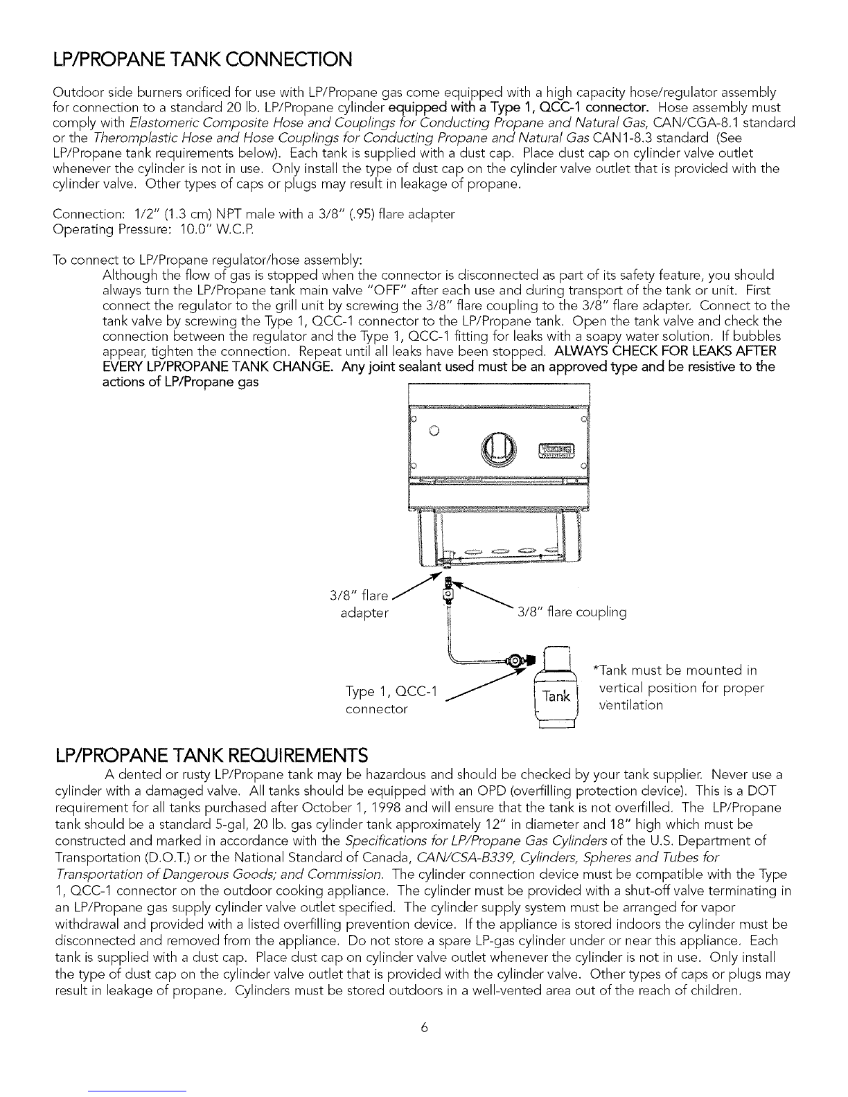 must be turned off at the LP gas supply cylinder.