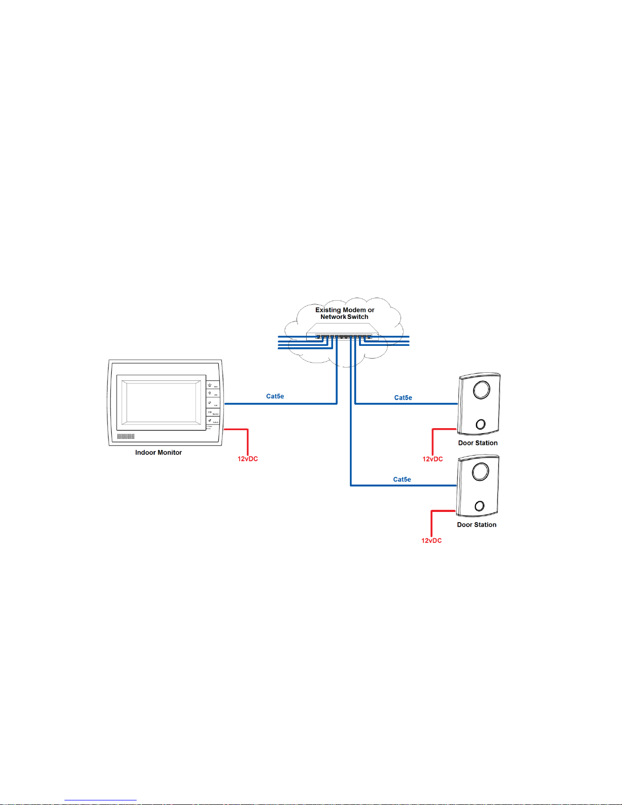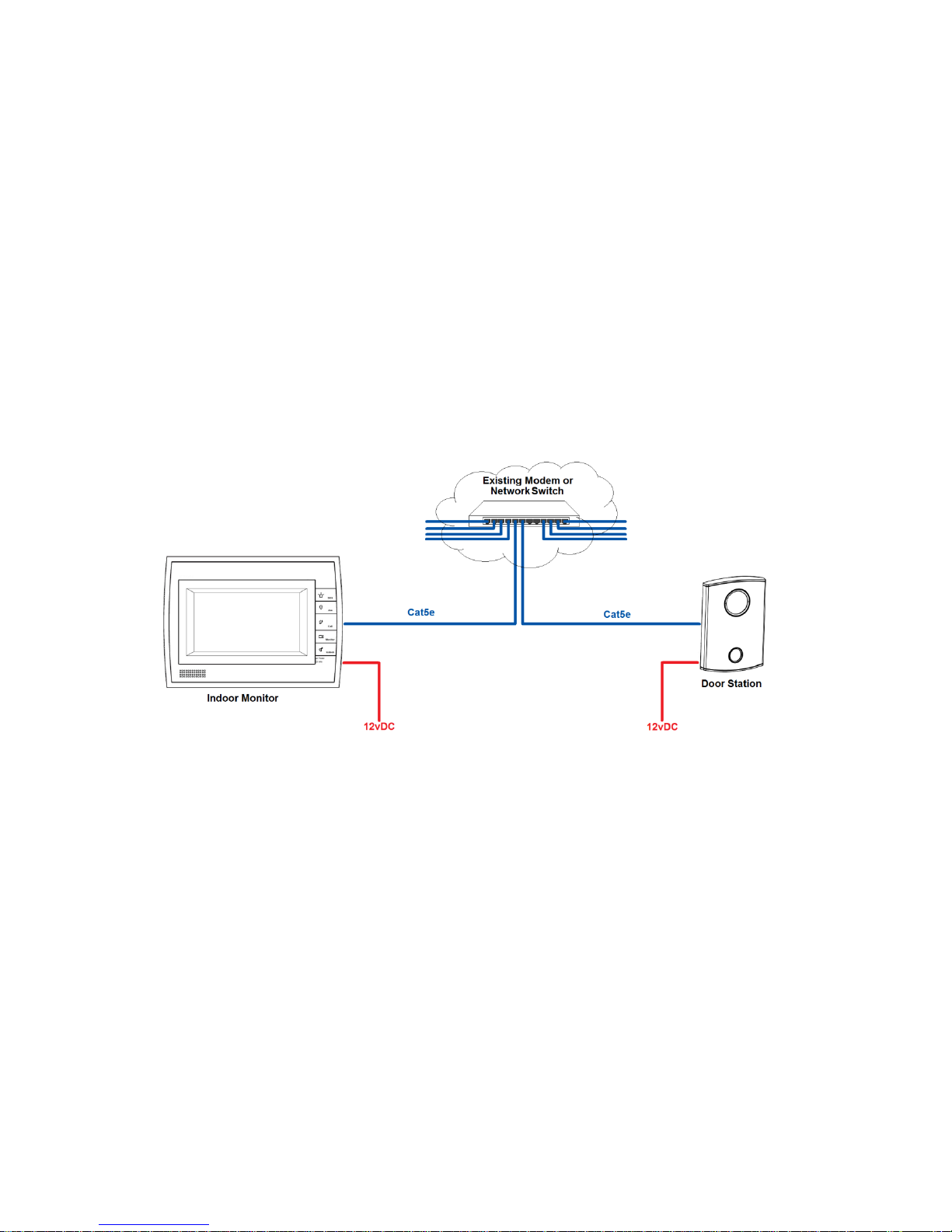 Indoor Monitor and Door Station, to a network switch or existing LAN to connect.