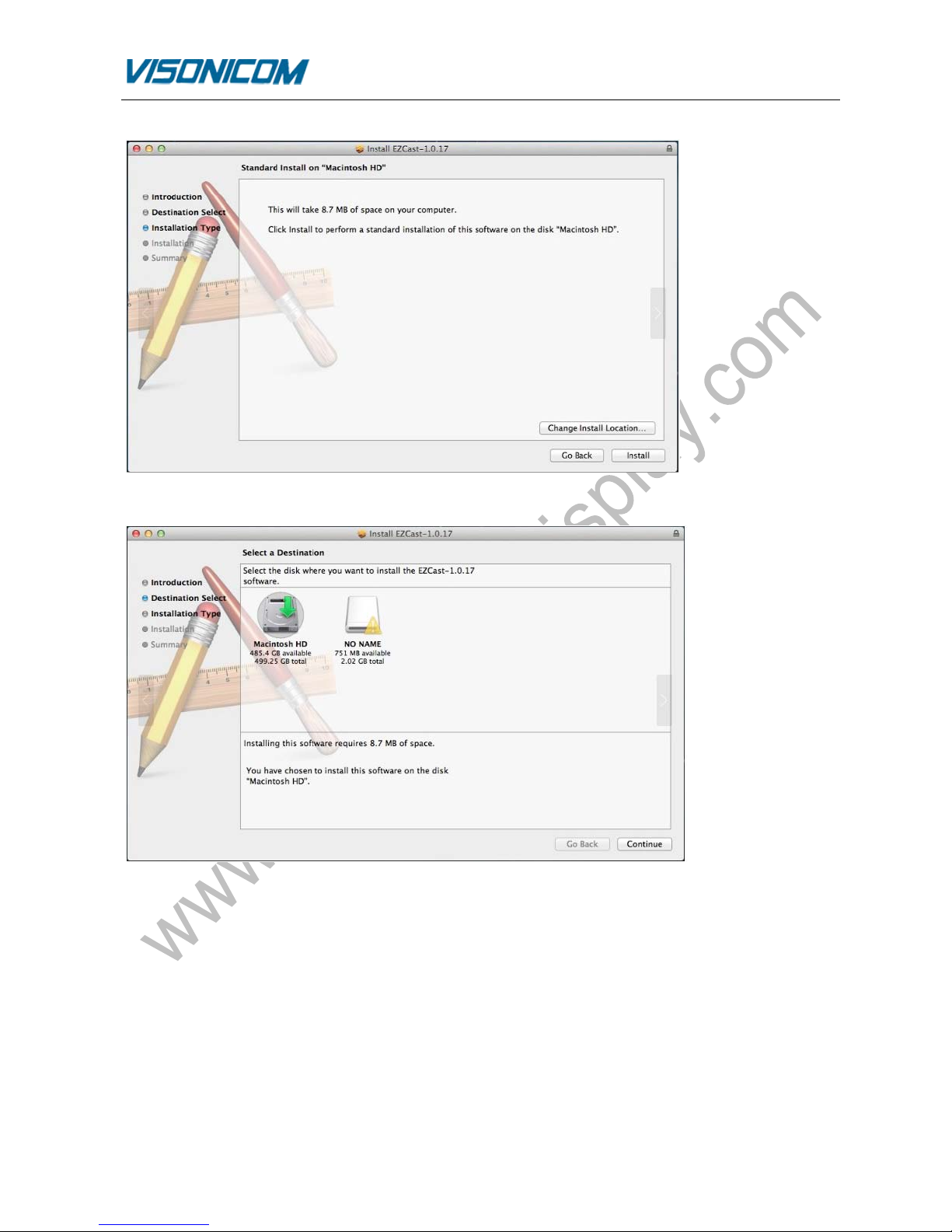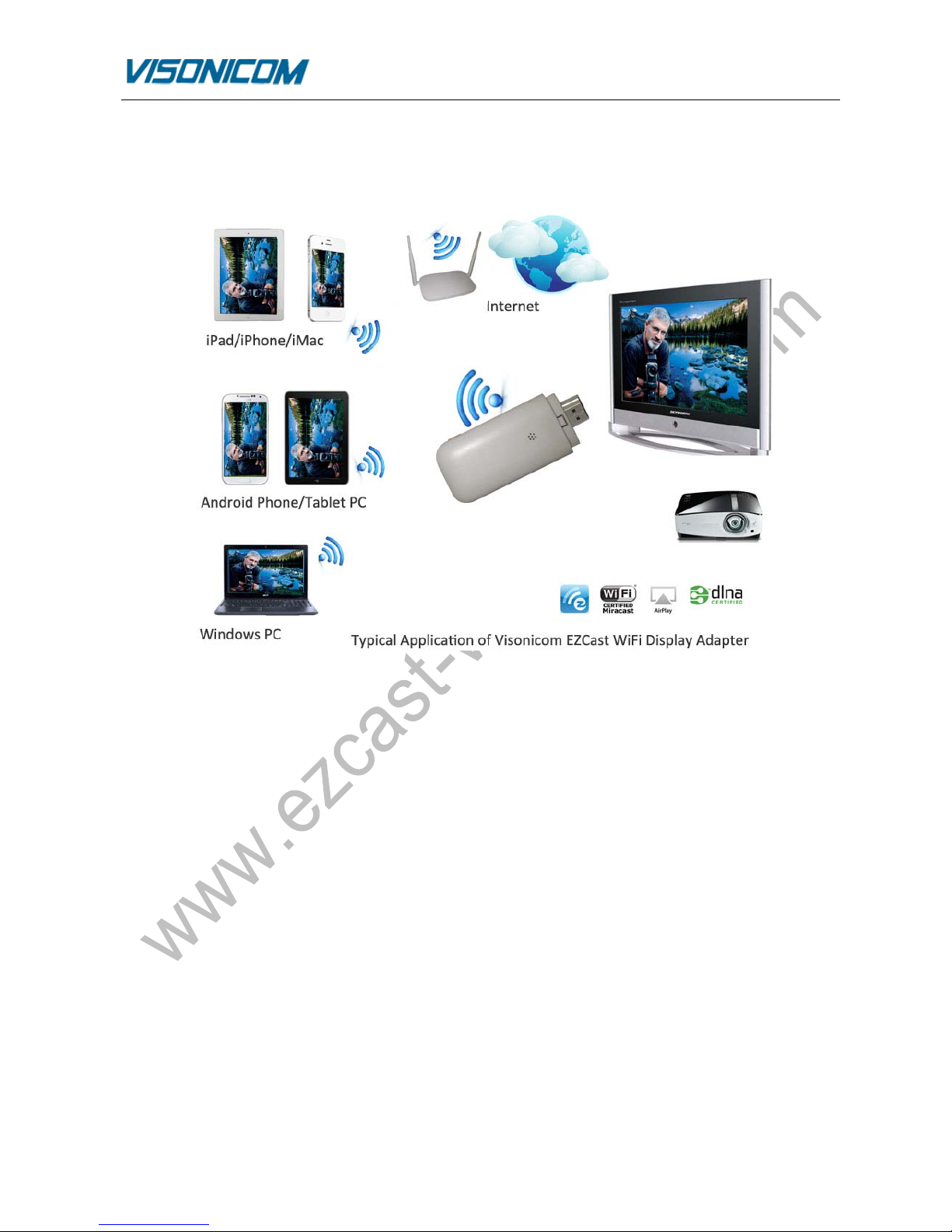 Visonicom EZCast WiFi display dongle series are the first universal cross platform (Mac OS, iOS, Android,