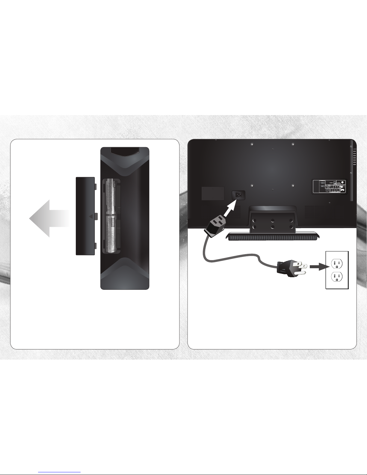 • When connected to a power outlet, power is always flowing into your TV. To totally disconnect power, unplug the power cord.