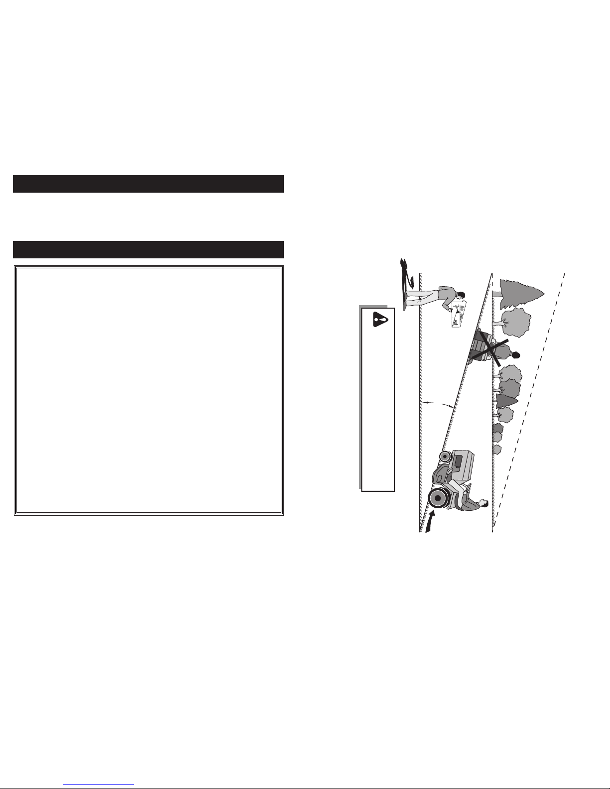 • Do no use on steep slopes.