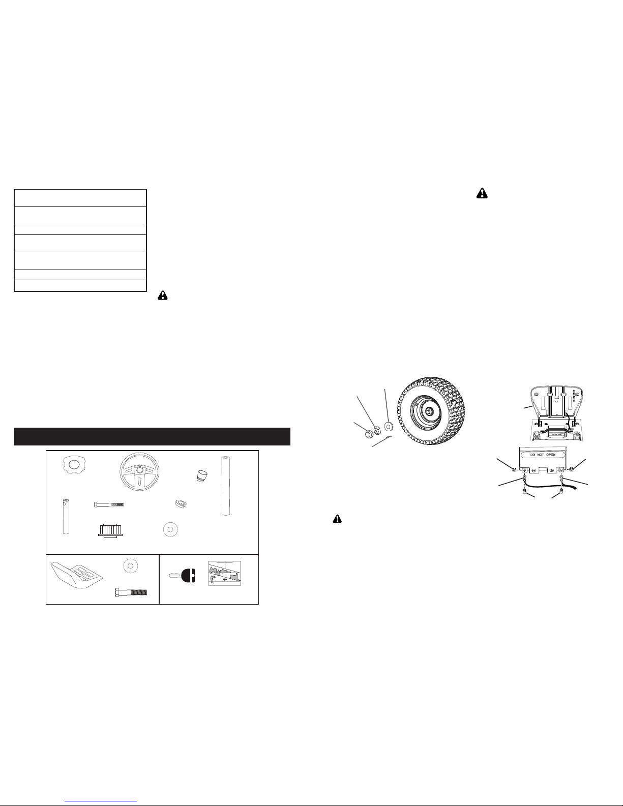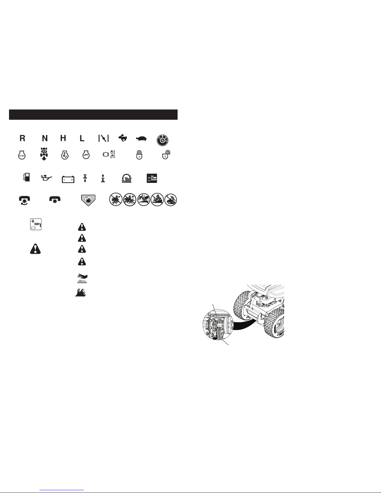 • Do not mow on wet grass. Tires may lose
