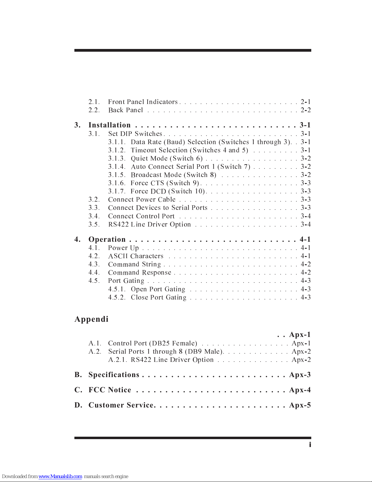 A.2. Serial Ports 1 through 8 (DB9 Male).............Apx-2