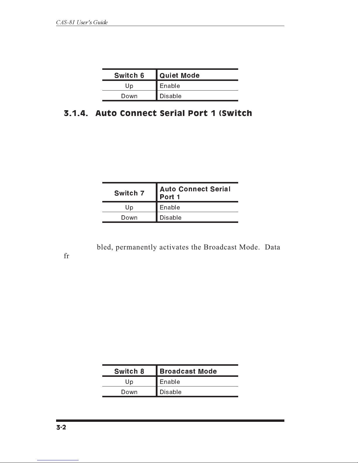 3.1.5. Broadcast Mode (Switch 8) ...............3-2