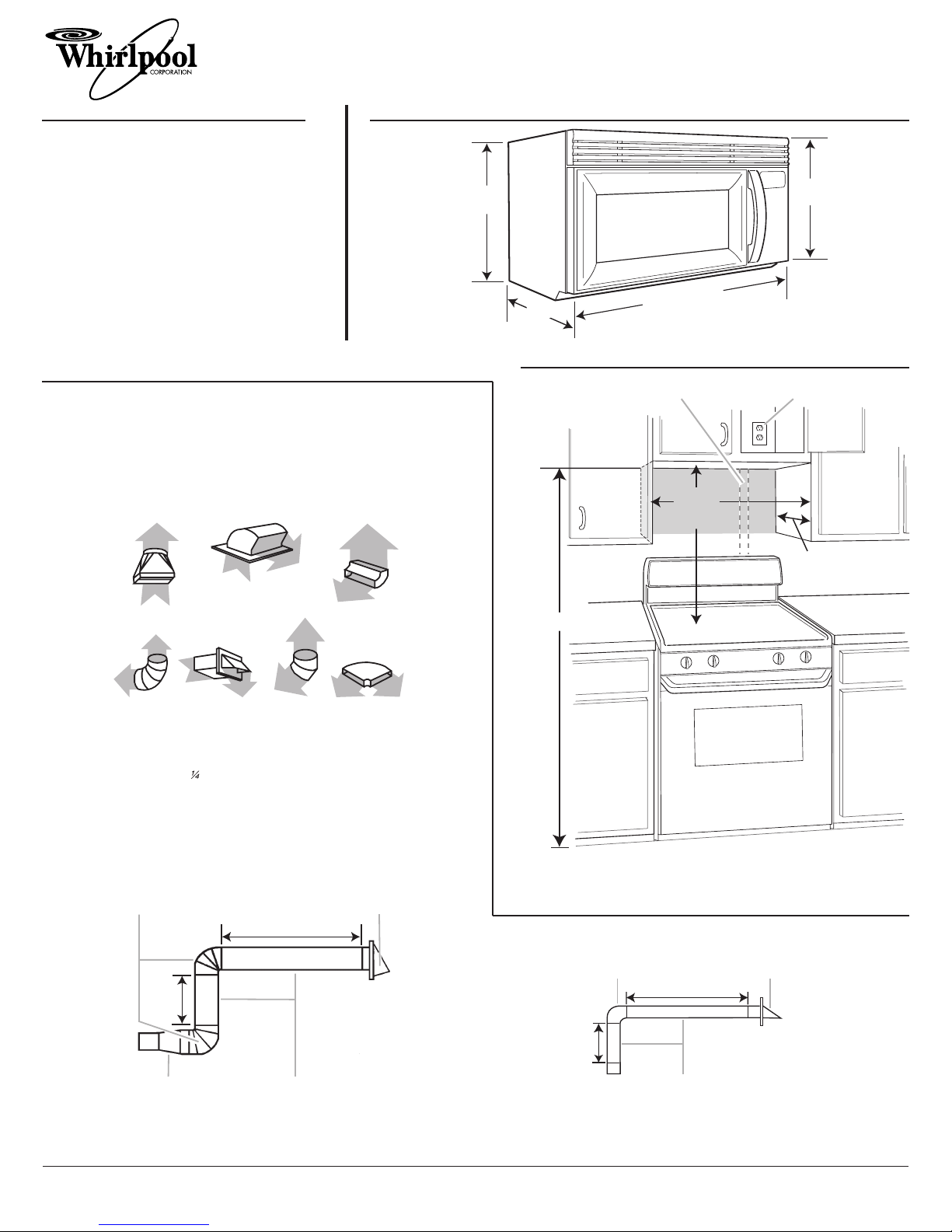 A 3¹⁄₄" x 10" (8.3 x 25.4 cm) rectangular or 6" (15.2 cm) round vent should be used.