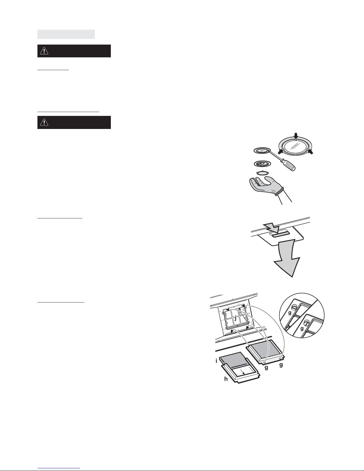• Do not use or leave the hood without the light bulb correctly fitted, as this may cause electric shock.