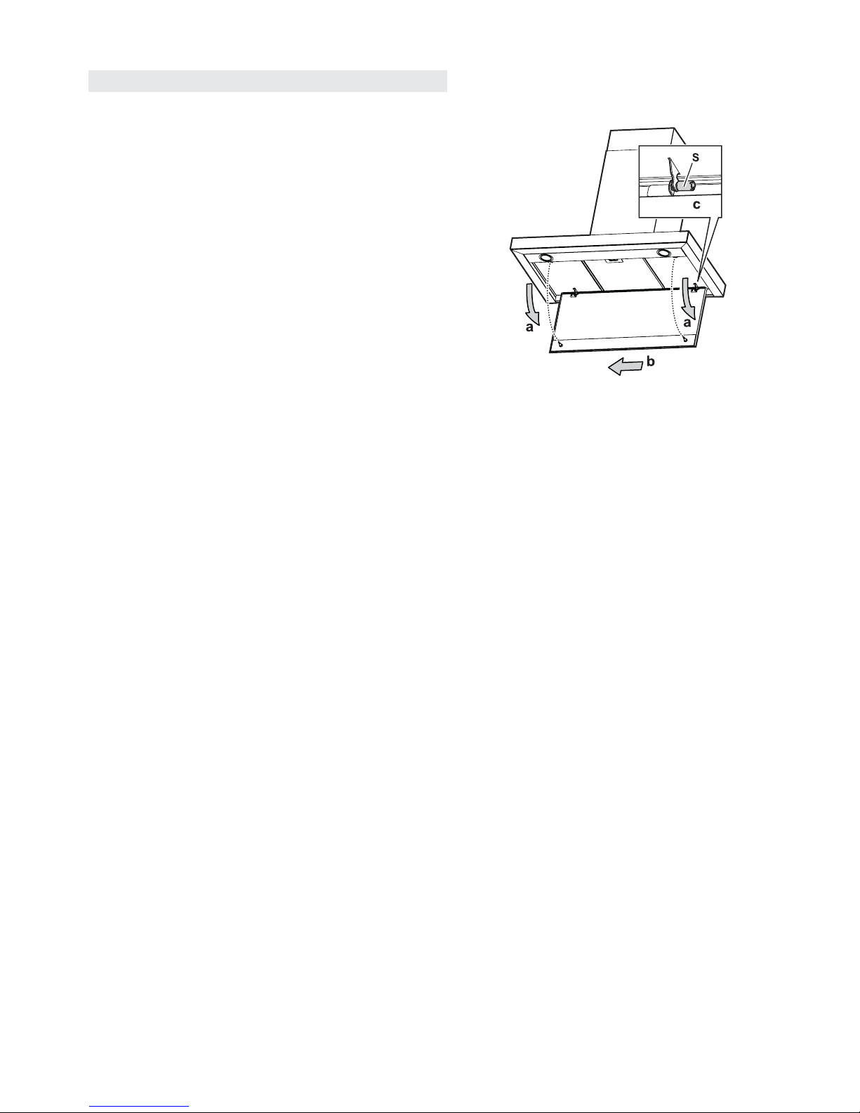 • The hood is not a worktop, therefore do not place any objects on top of it or overload it.
