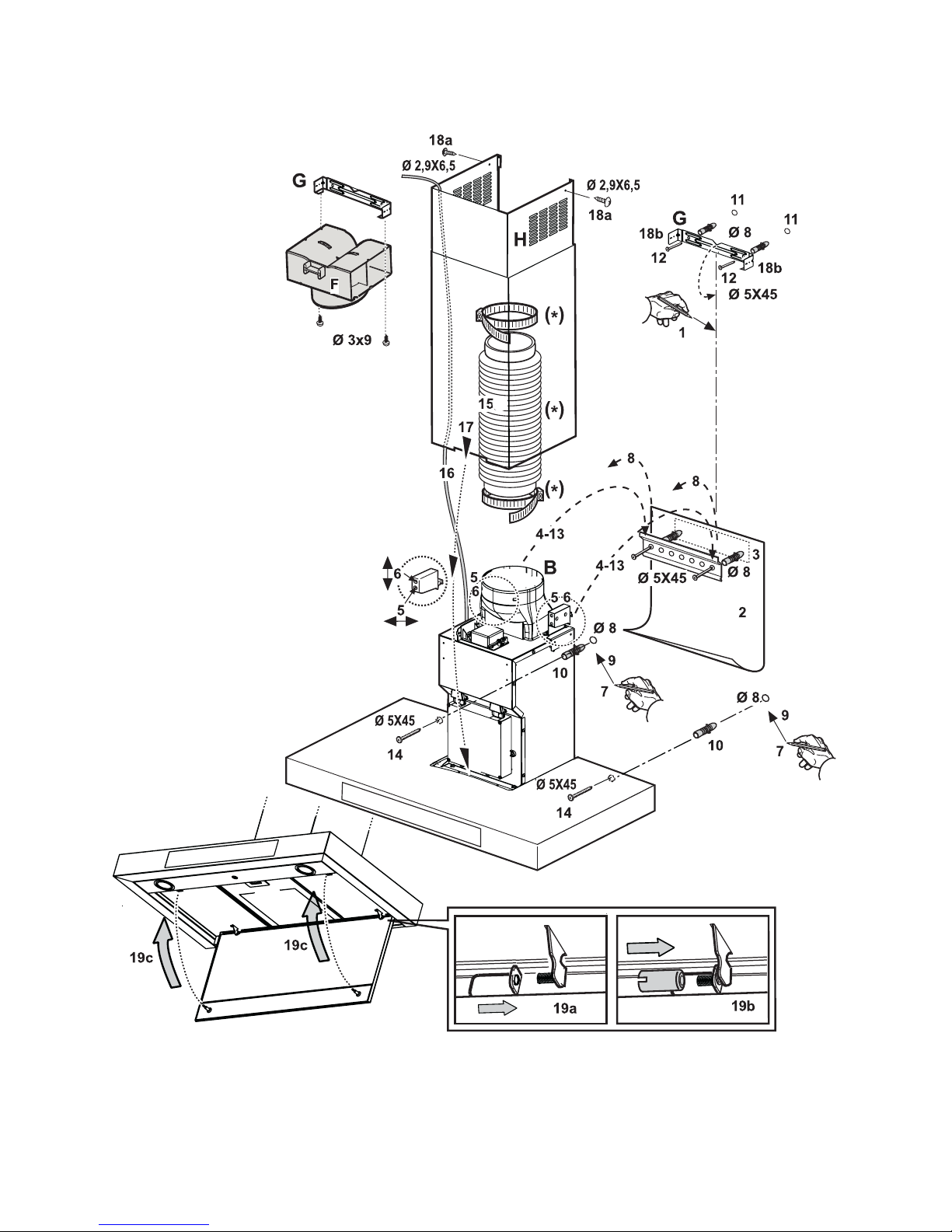 combustible materials. The appliance must have its own dedicated discharge outlet. All national requirements of art. 7.12.1 of CEI EN 60335-2-31 must be